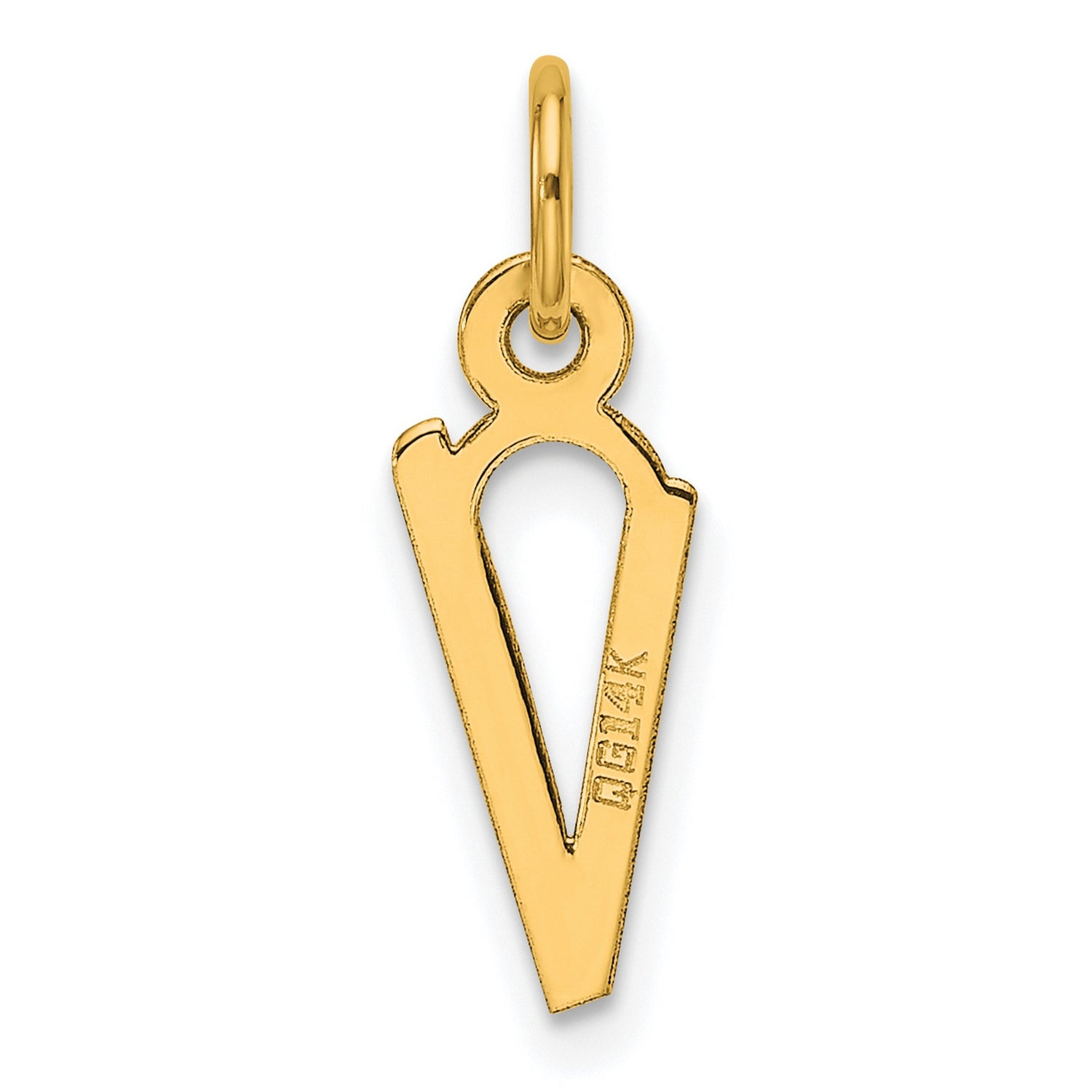 Enhance your jewelry collection with our exquisite Slanted Block Letter V Initial Charm Pendant crafted from genuine 14k Yellow Gold. This elegant pendant offers a personalized touch, making it the perfect accessory to complement any outfit.