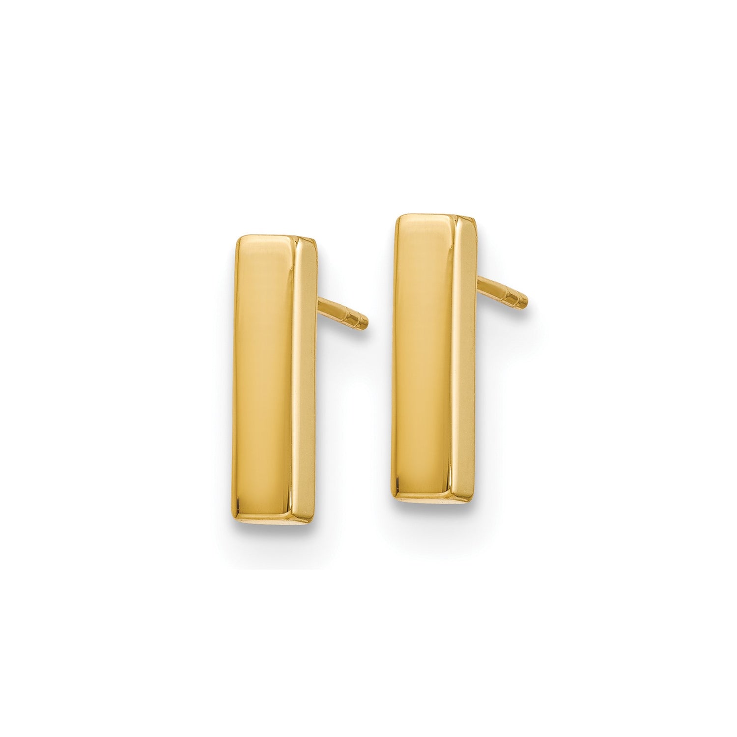 14k Yellow Gold Bar Stud Earrings, Minimalist Rectangular Geometric Design for Women
