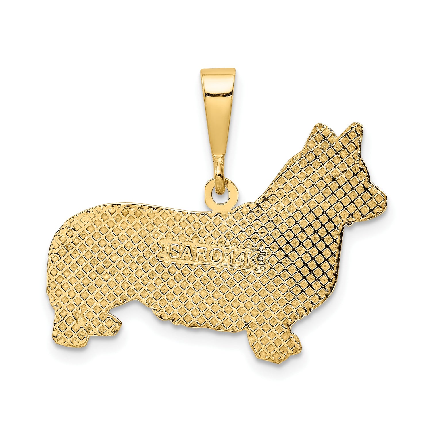 14k Yellow Gold Corgi Pendant, Textured Dog Charm Symbolizing Loyalty and Affection