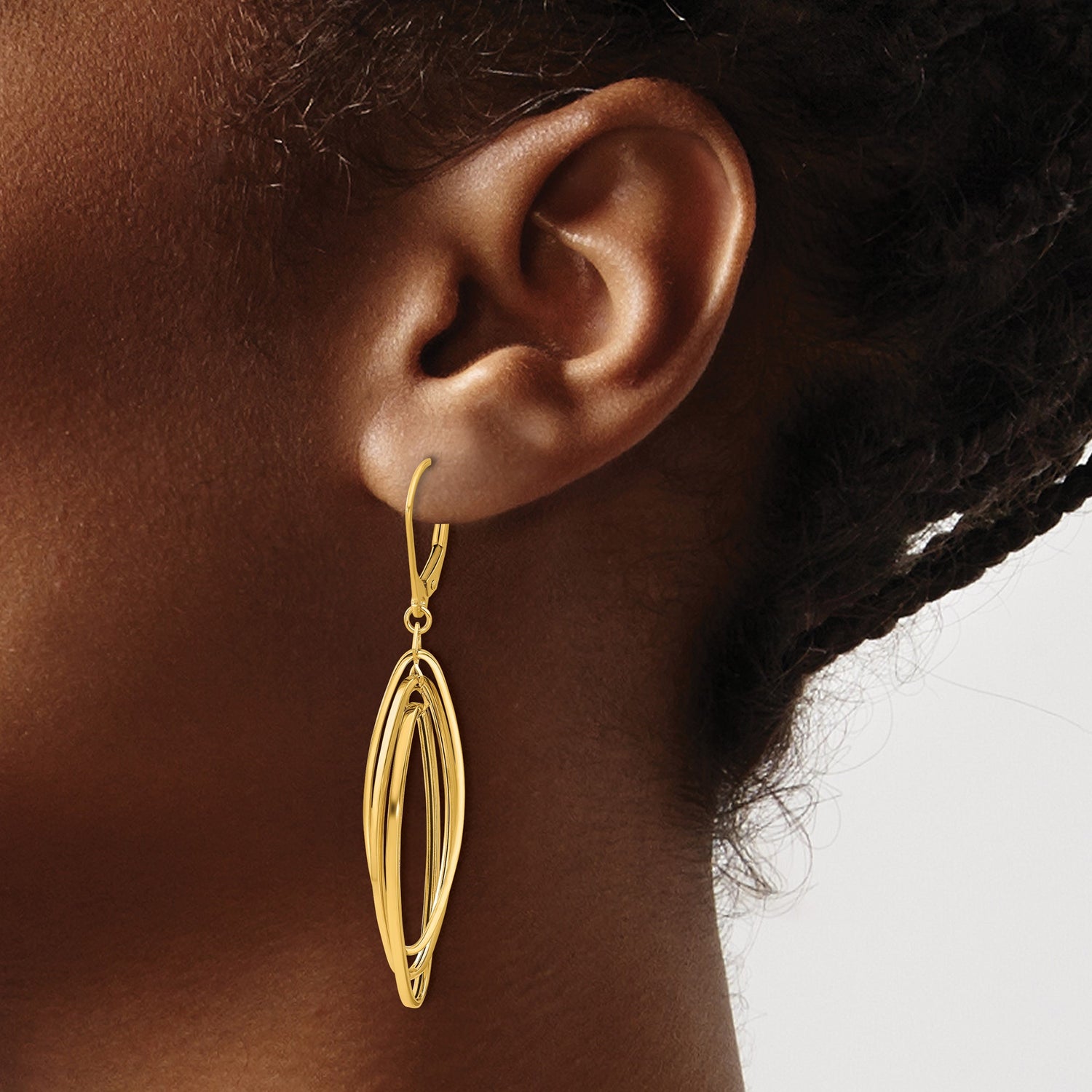 14k Yellow Gold Dangle Earrings with Layered Open Oval Loops, Leverback, Minimalist Style