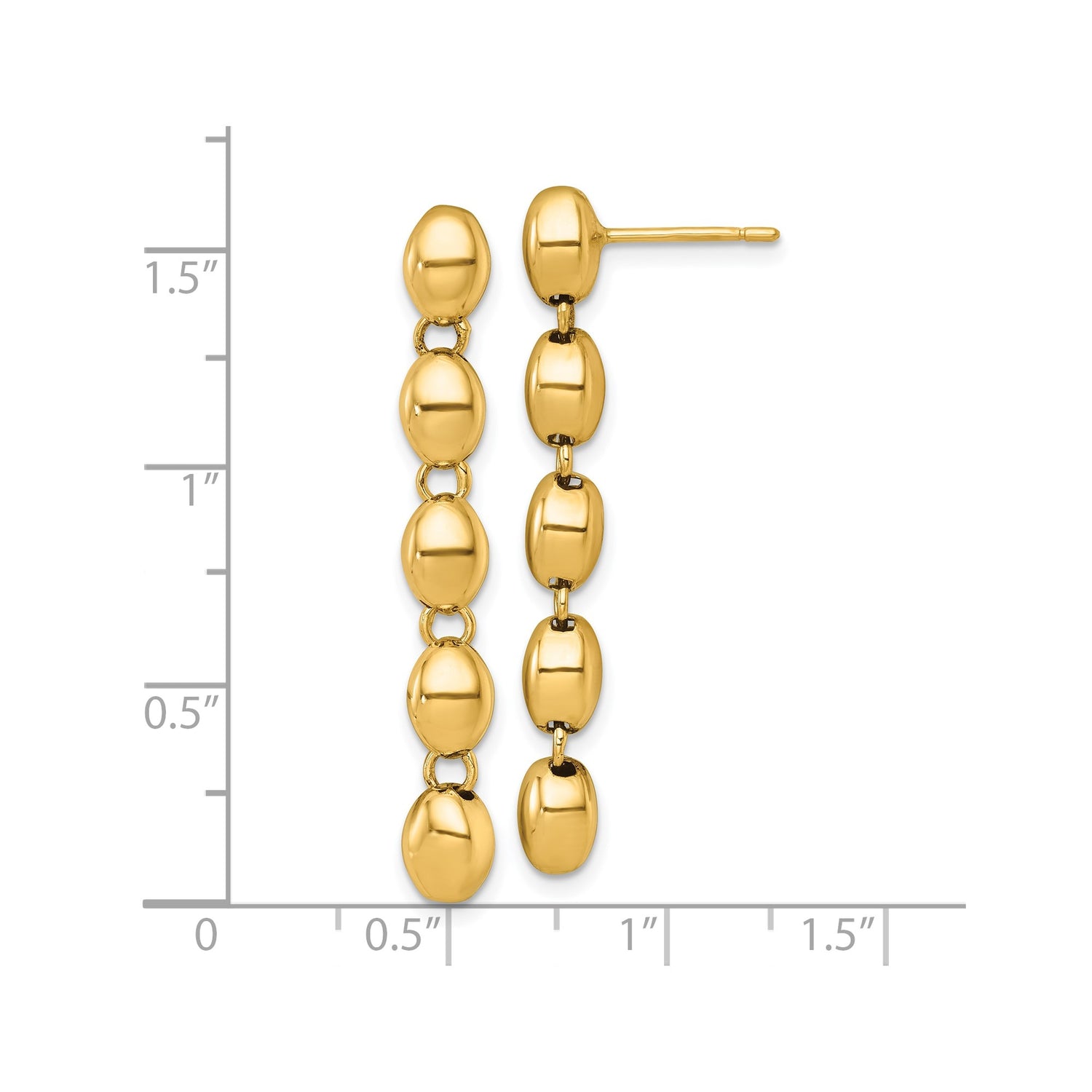 14k Yellow Gold Dangle Earrings with Linked Oval Beads, High Polish Drop Design