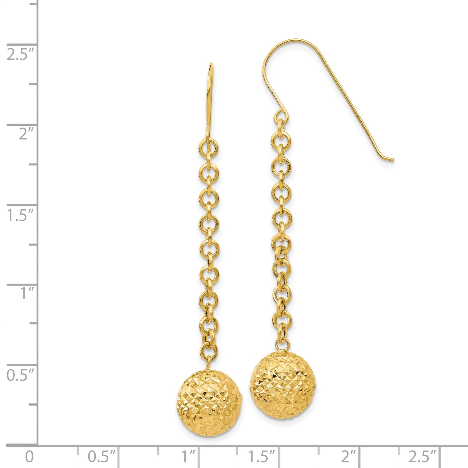 14k Yellow Gold Dangle Earrings with Textured Ball Drop and Chain Link Design