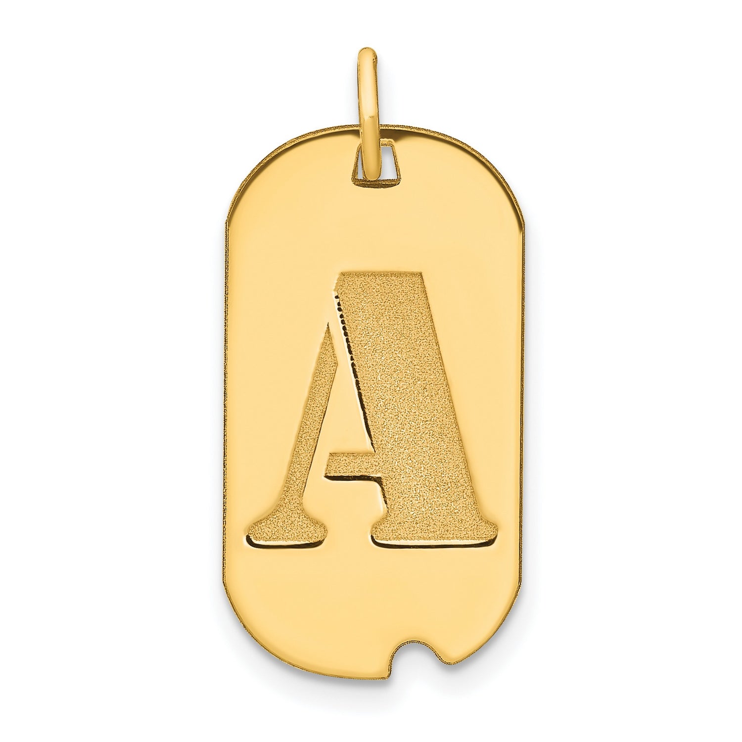 14k Yellow Gold Dog Tag Pendant with Cutout Letter A, Polished Monogram Charm