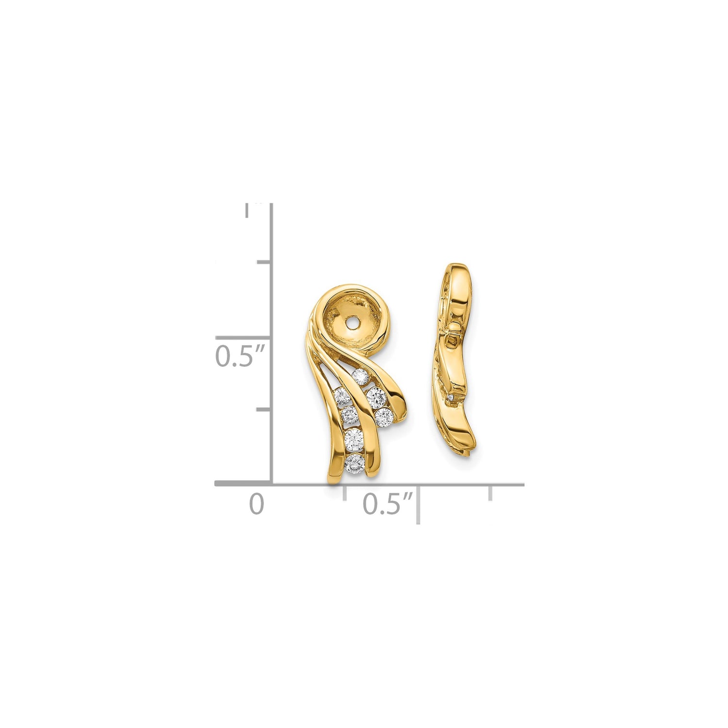 14k Yellow Gold Earring Jackets with Diamond, Flowing Swirl Design Stud Enhancers for Women