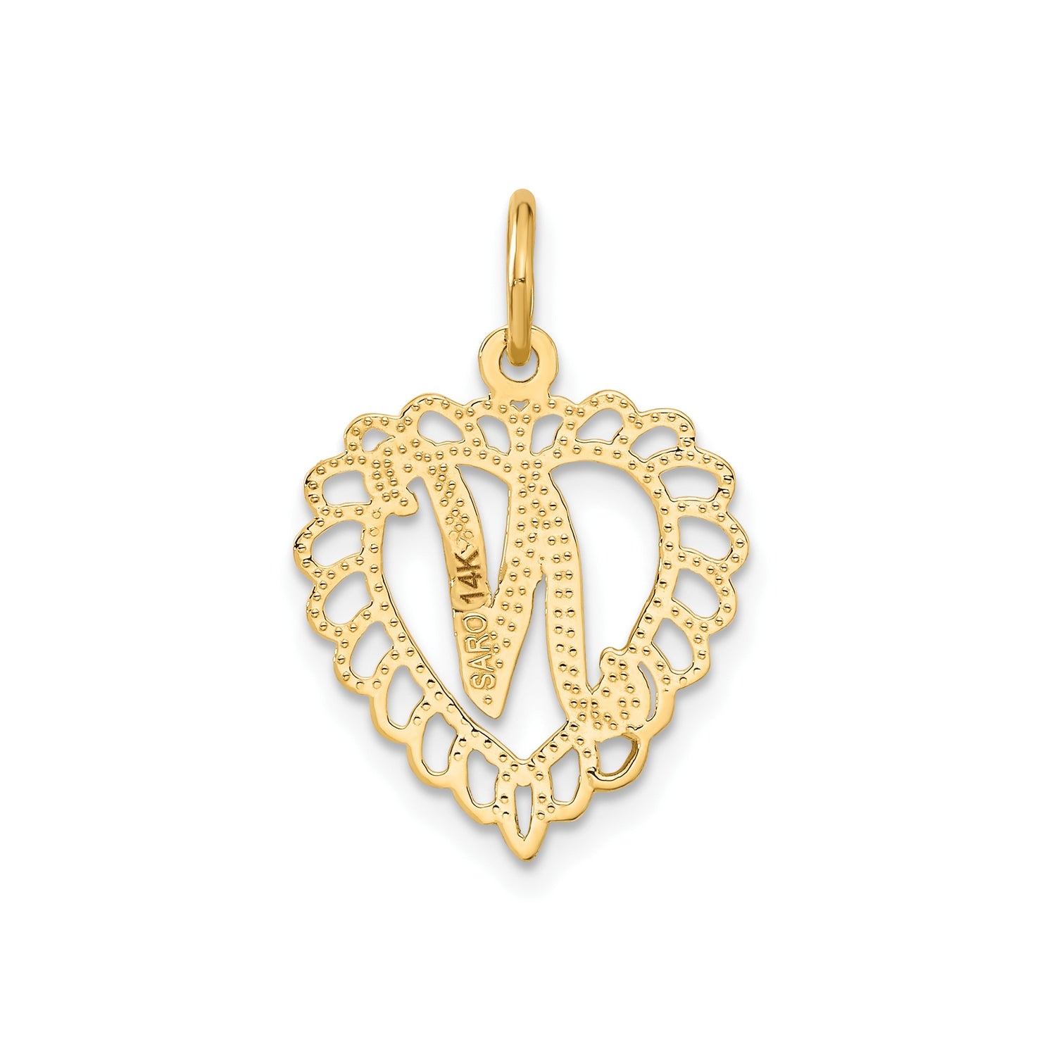 Capture elegance and personalize your jewelry collection with our Letter N Initial Inside Open Heart With Fancy Border Charm Pendant. Crafted in real 14k yellow gold, this stunning piece combines sophistication with a touch of personal sentiment, making it a cherished accessory for any occasion.