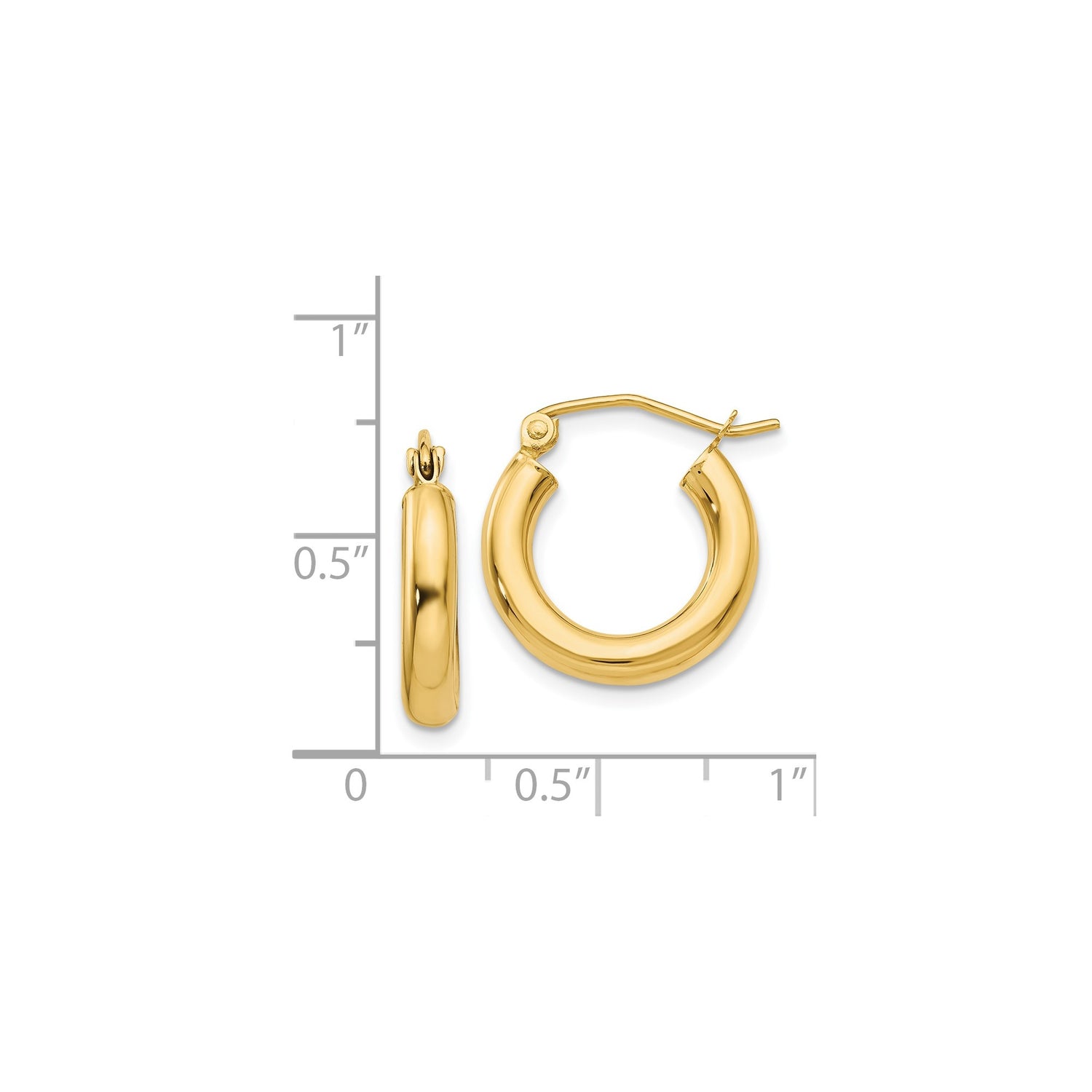 14k Yellow Gold Hoop Earrings, Classic Round Hinged Design, Polished Minimalist Style