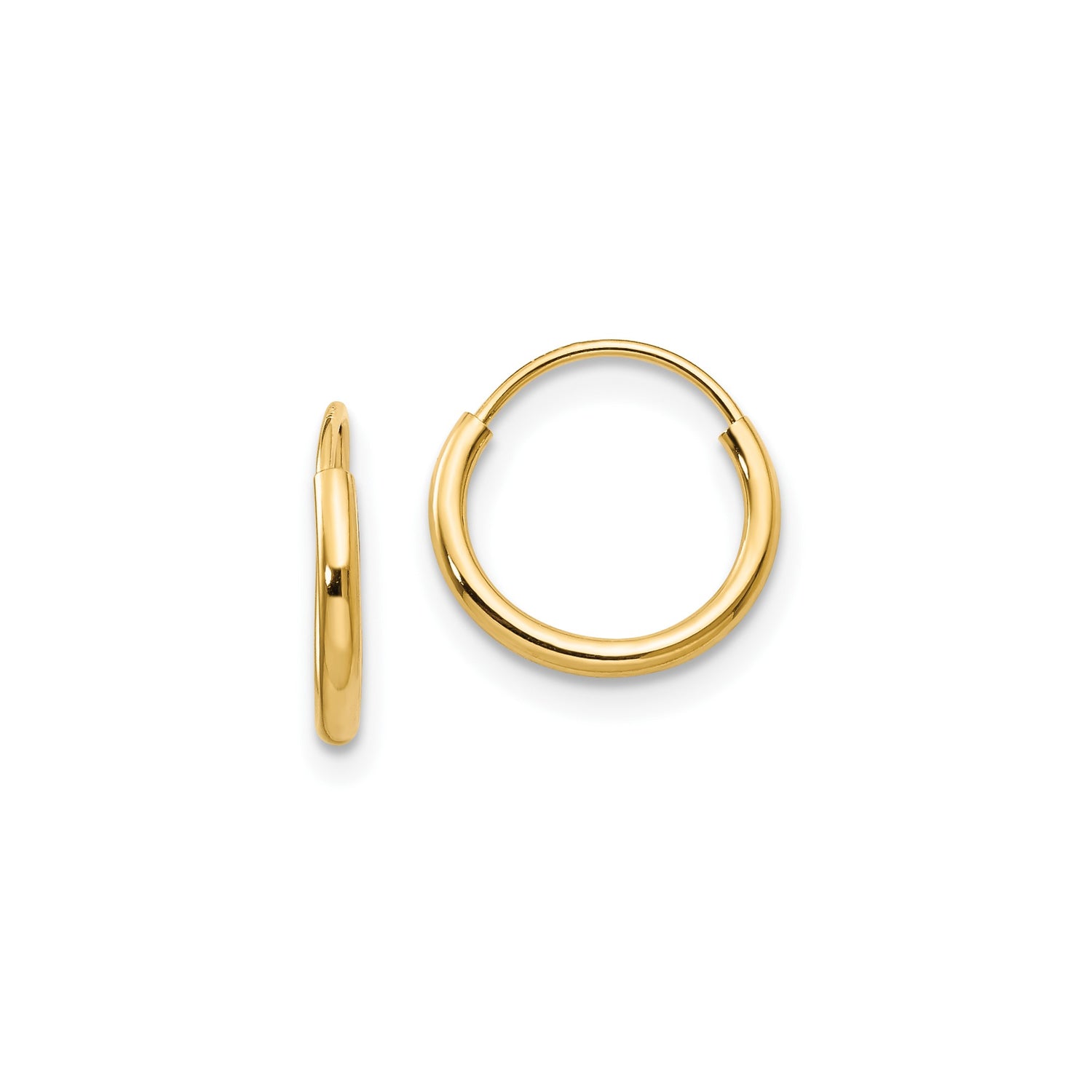 14k Yellow Gold Hoop Earrings, Classic Round Lightweight Design with Polished Finish for Women