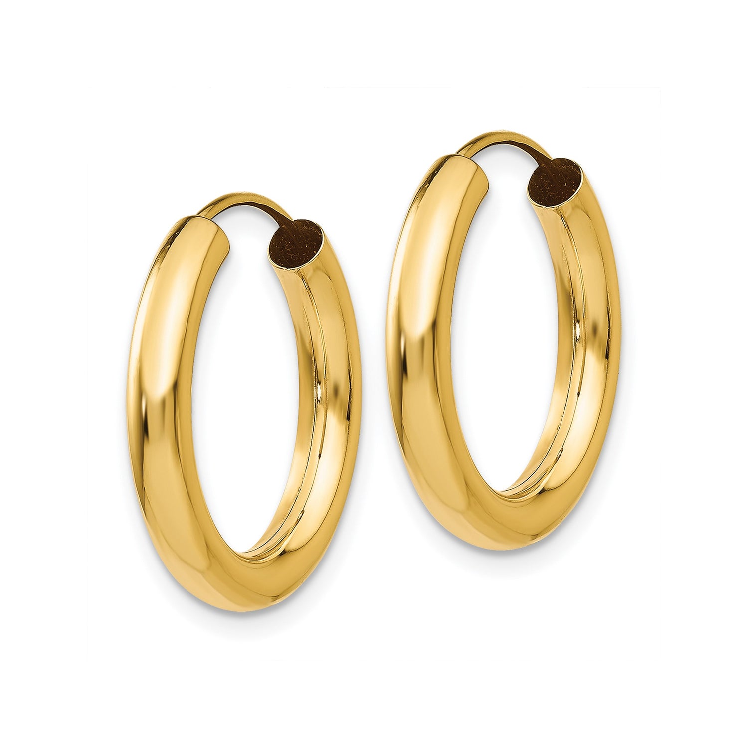 14k Yellow Gold Hoop Earrings, Classic Round Polished Lightweight Tube Design for Women