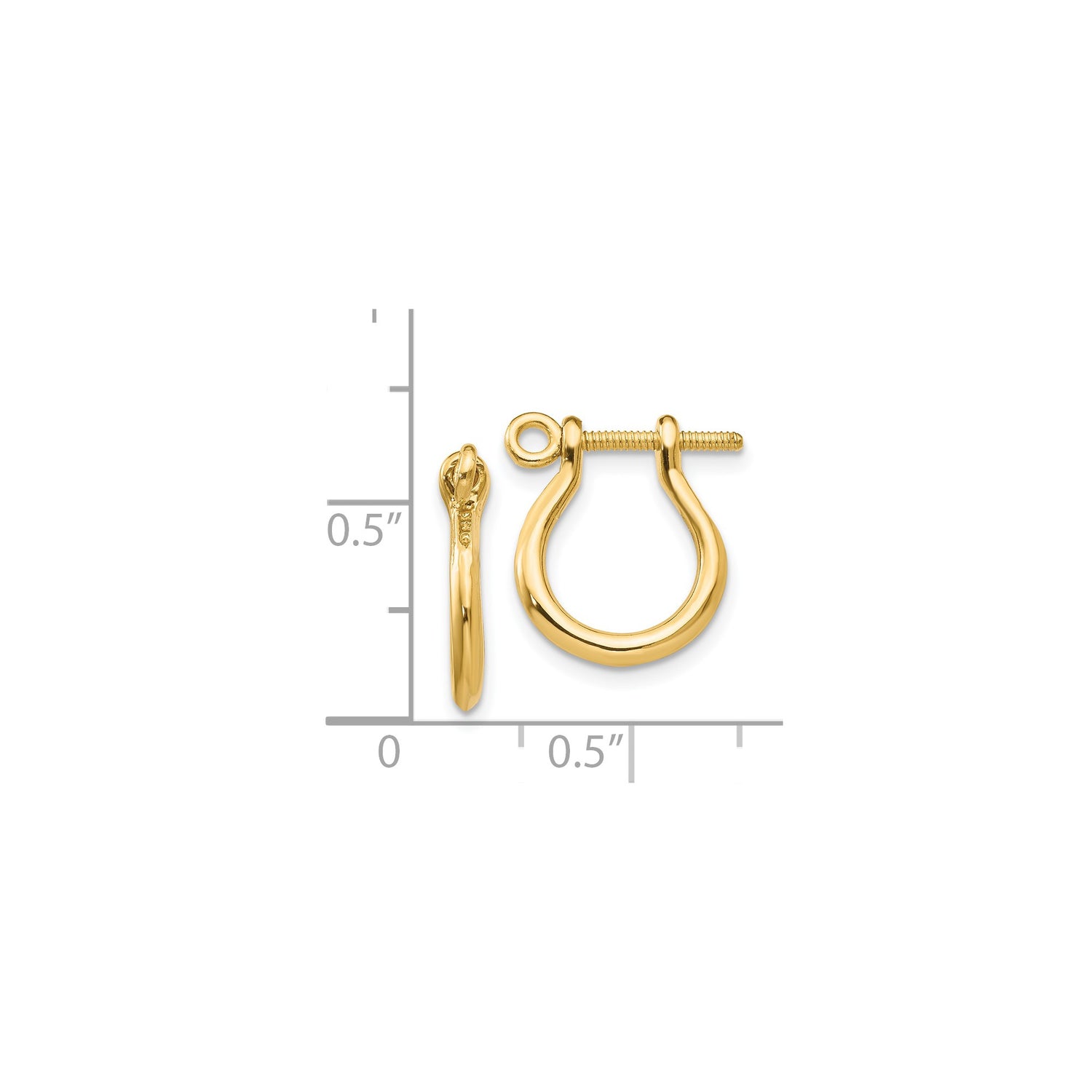 14k Yellow Gold Hoop Earrings, Horseshoe Minimalist Design, Screw Back Clasp