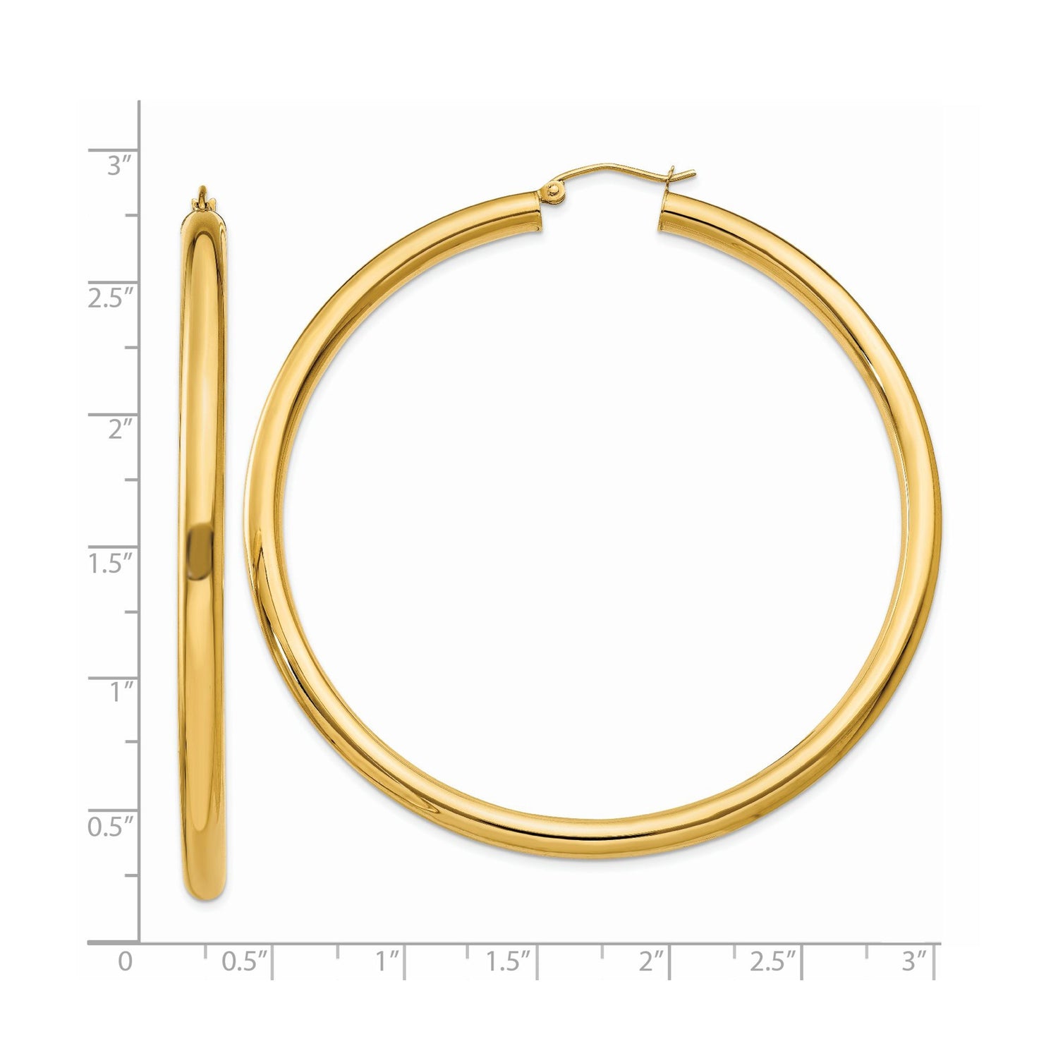 14k Yellow Gold Hoop Earrings, Large Lightweight Polished Round Hoops for Women