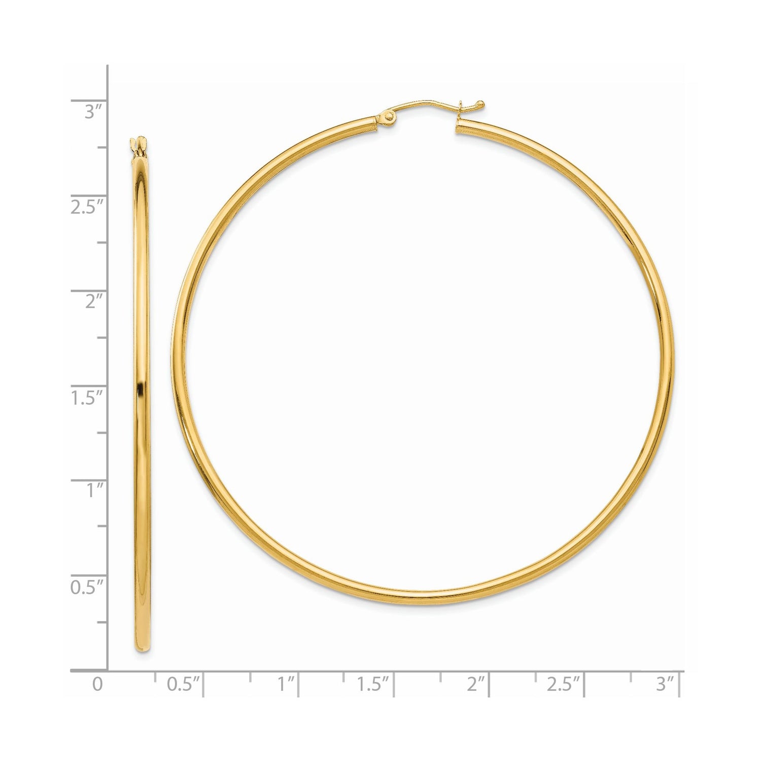 14k Yellow Gold Hoop Earrings, Large Lightweight Round Design with Latch-Back Closure
