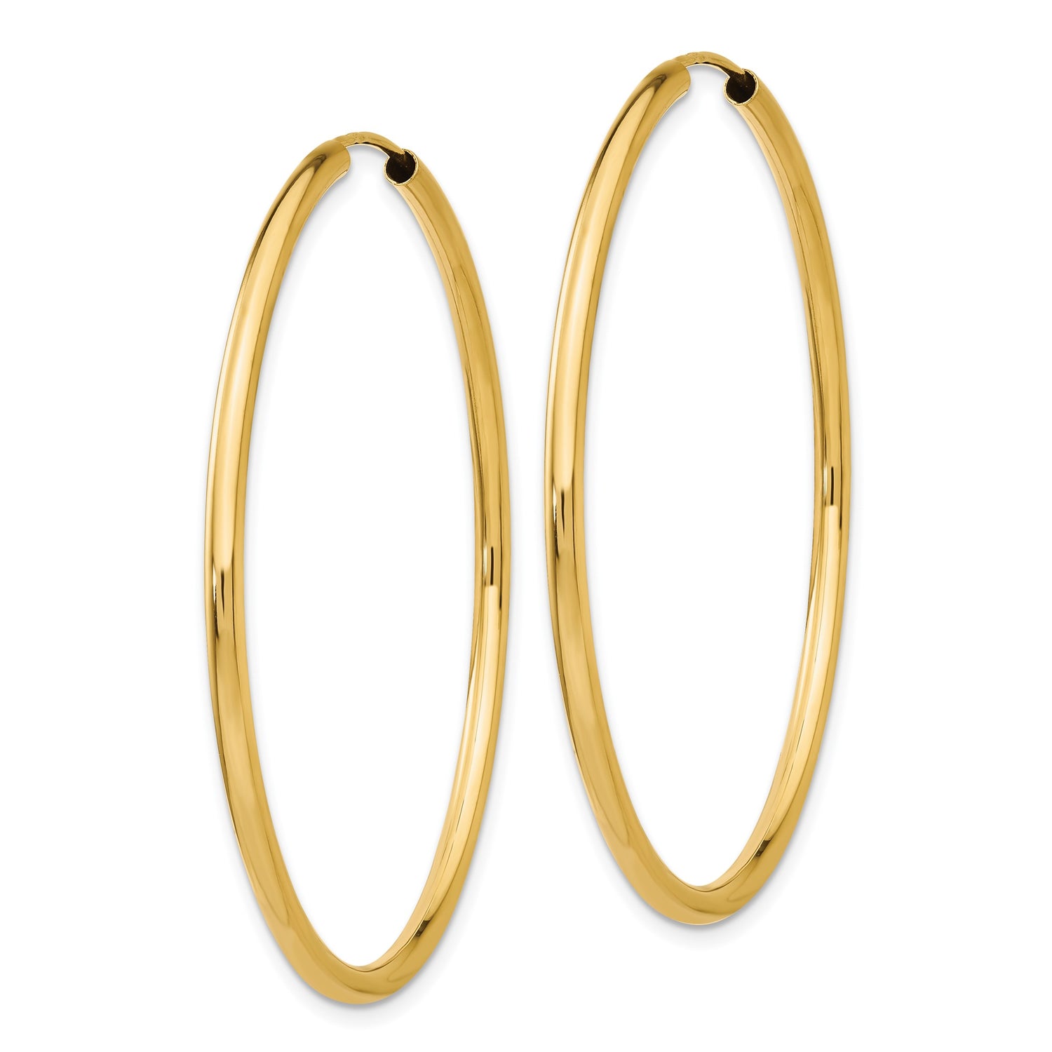 14k Yellow Gold Hoop Earrings, Large Round Polished Design, Classic Timeless Style for Women