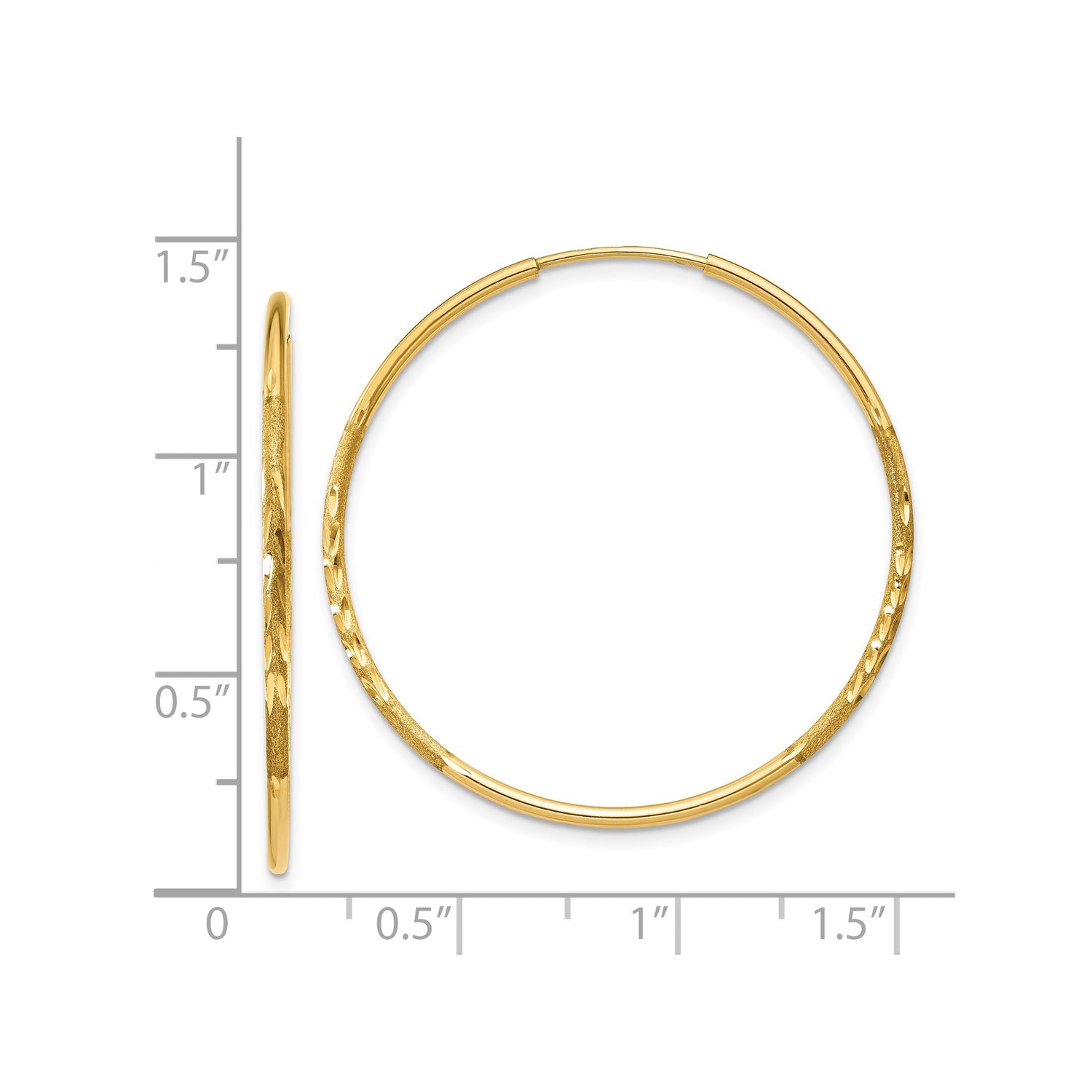 14k Yellow Gold Hoop Earrings, Lightweight Polished and Textured Diamond Cut Design