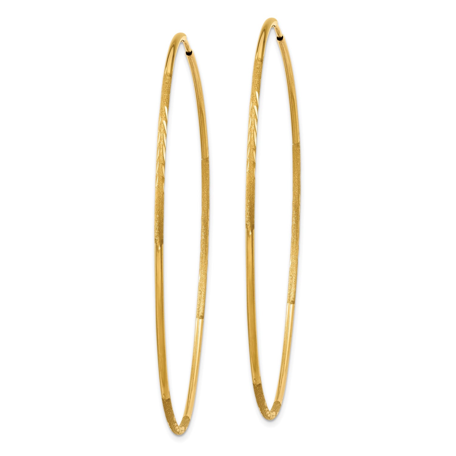 Choose these lightweight subtly textured hoops for a perfectly polished appearance that radiates effortless style. Made for women who value timeless beauty, these yellow gold hoop earrings are delicate yet striking. Experience the comfort and shine of 14k gold round hoops that fit seamlessly into daily wear without overpowering your personal aesthetic.