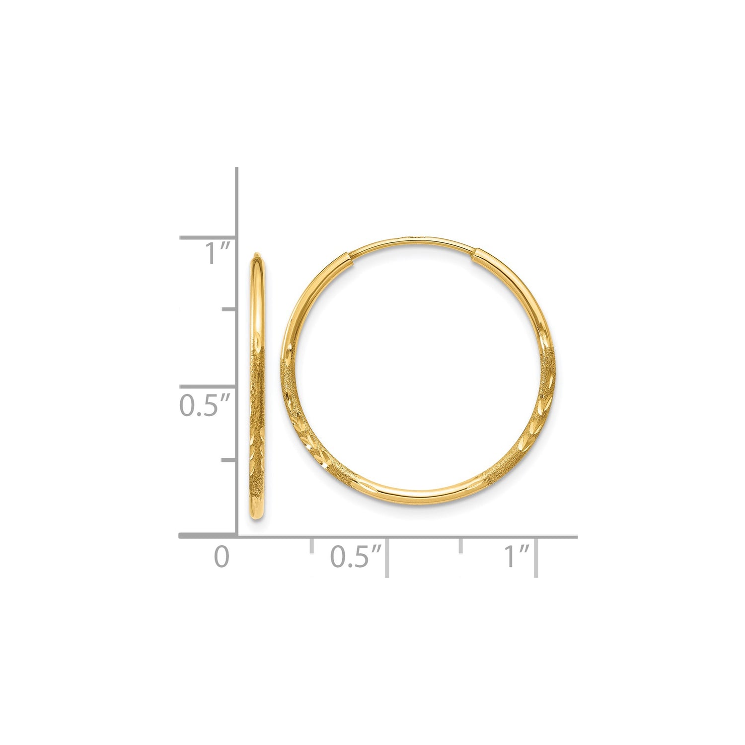 Add a Touch of Shine with These Elegant 14k Yellow Gold Hoops That Elevate Your Look with Subtle Sophistication and Artful Style. Crafted with a Satin Surface and a Diamond Cut Texture, These Round Yellow Gold Hoops Combine Fine Detailing and Smooth Elegance, Perfect for Those Who Appreciate Classic Gold Accessories with a Modern Edge.