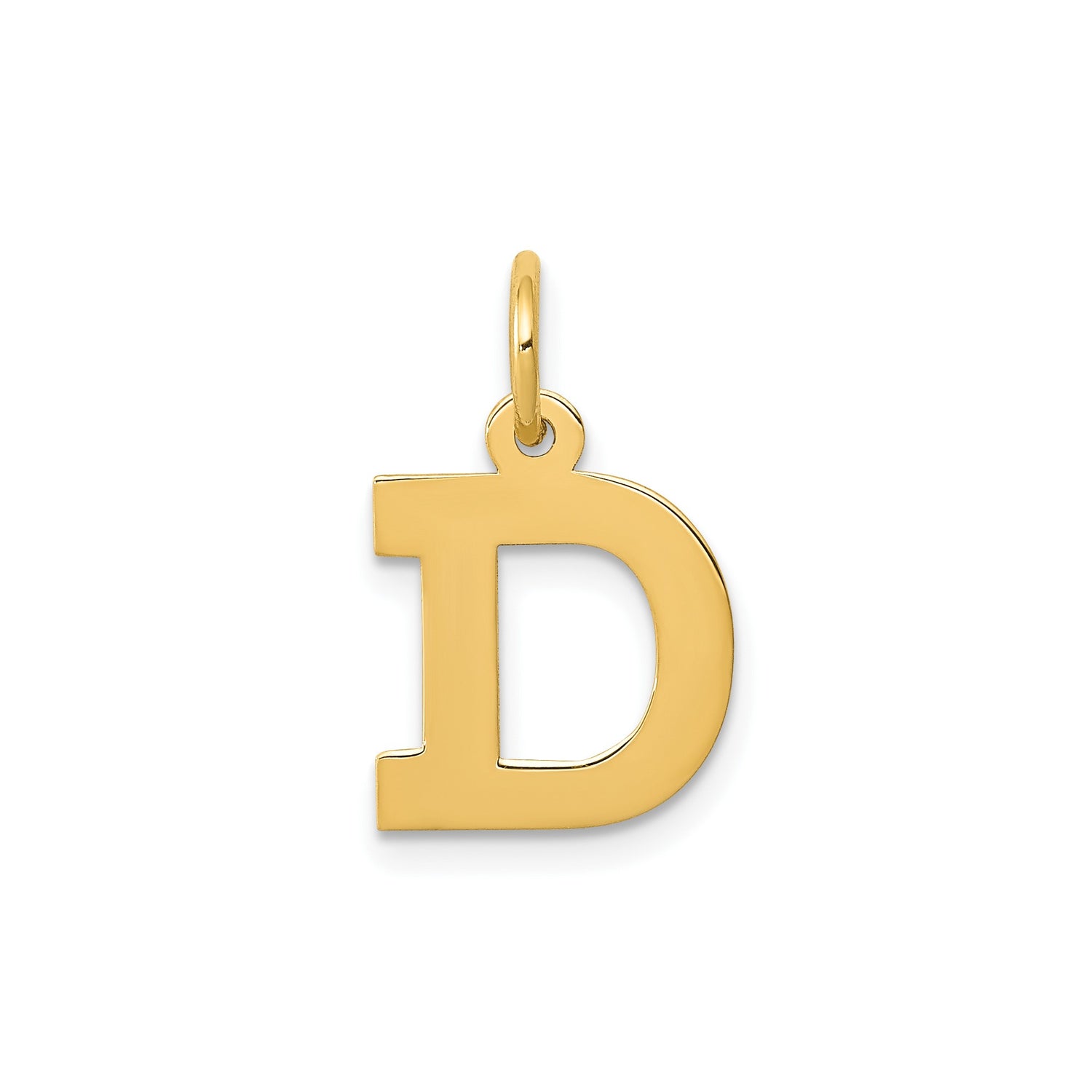 Elevate your style with the Solid Polished Block Style Letter D Initial Charm Pendant in 14k yellow gold — a definitive statement of luxury and personal expression.