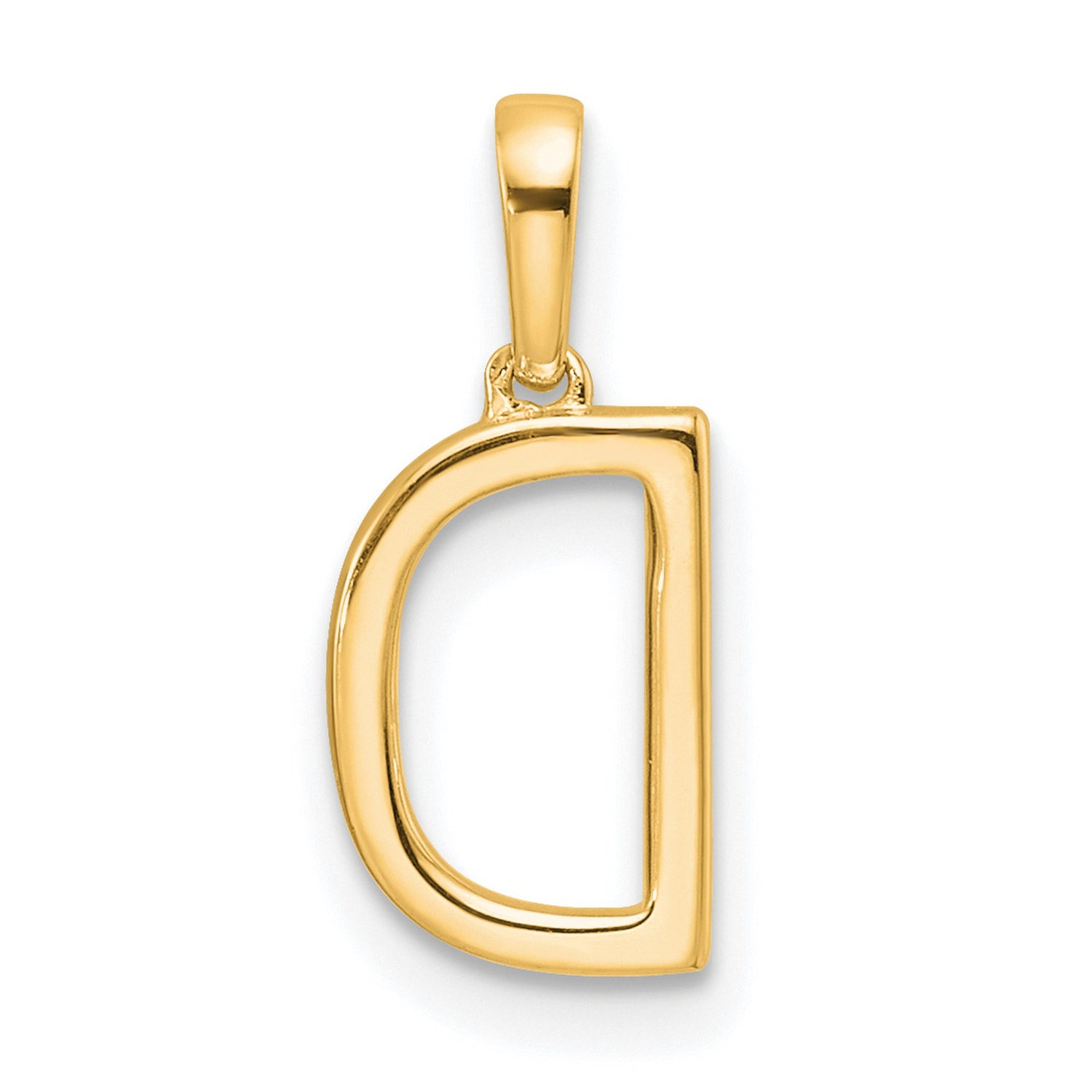 14k Yellow Gold Initial D Pendant with Cubic Zirconia, Alphabet Charm for Women
