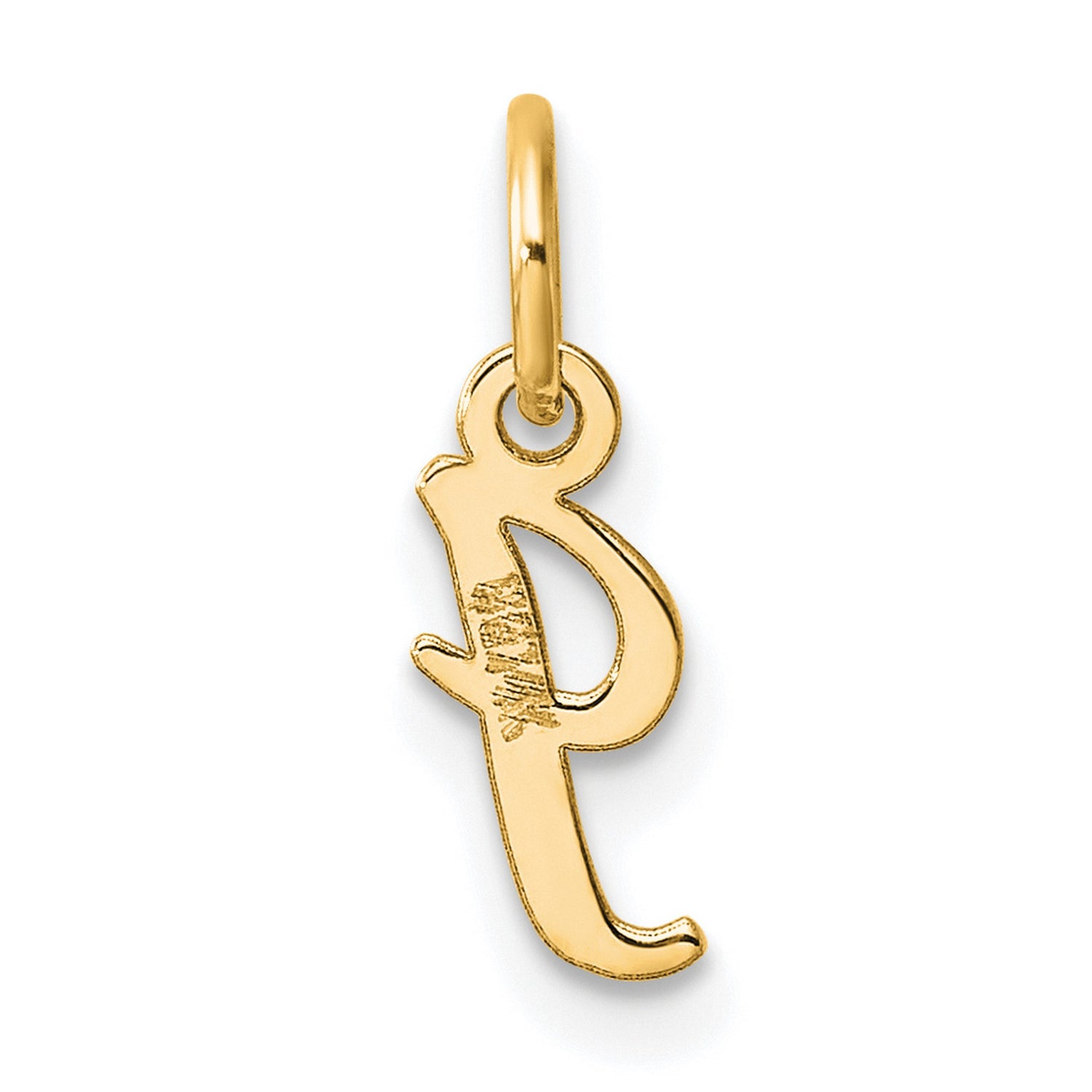 Small Script Letter I Initial Charm Pendant in Real 14k Yellow Gold