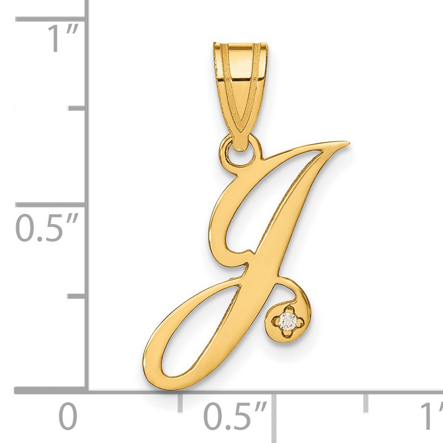 14k Yellow Gold Initial J Pendant with Diamond Accent, Script Letter Charm for Women