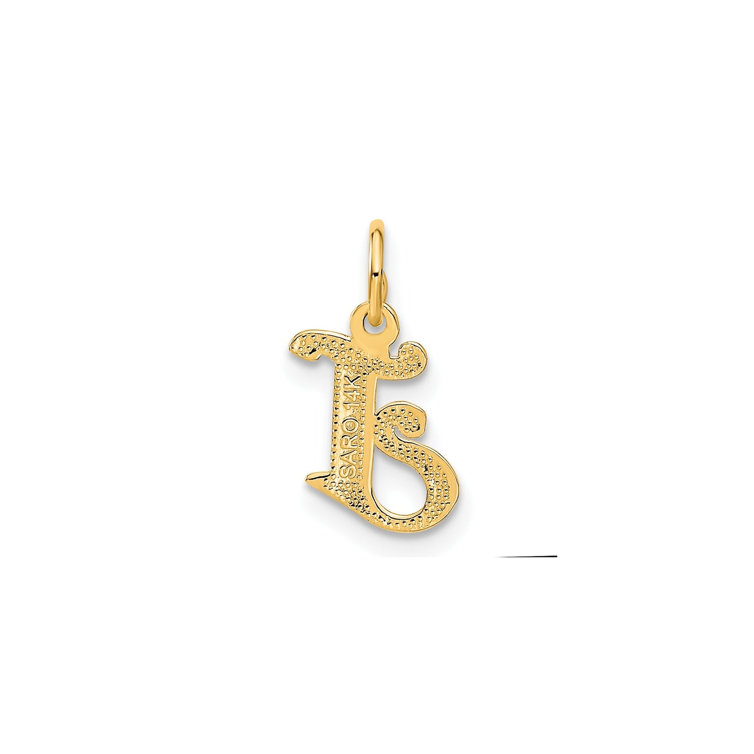 14k Yellow Gold Initial Pendant Charm, Letter J Monogram with Textured Finish