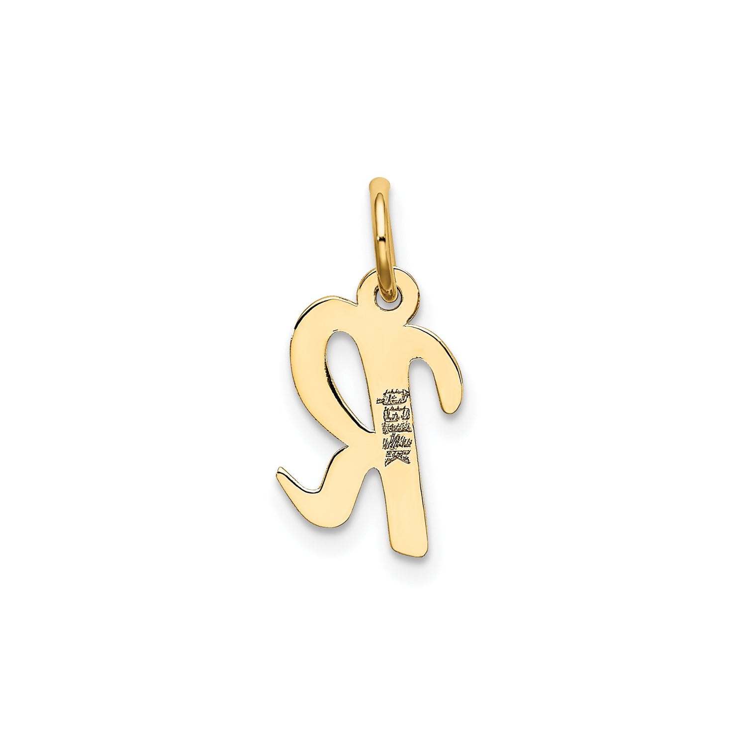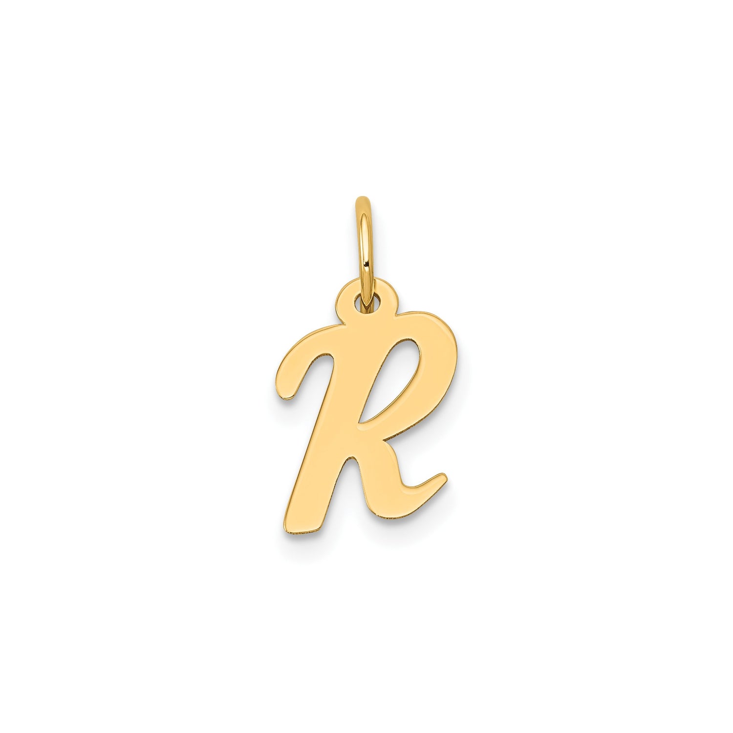 14k Yellow Gold Initial Pendant, Flat Script Letter R Charm, Unisex Monogram Jewelry