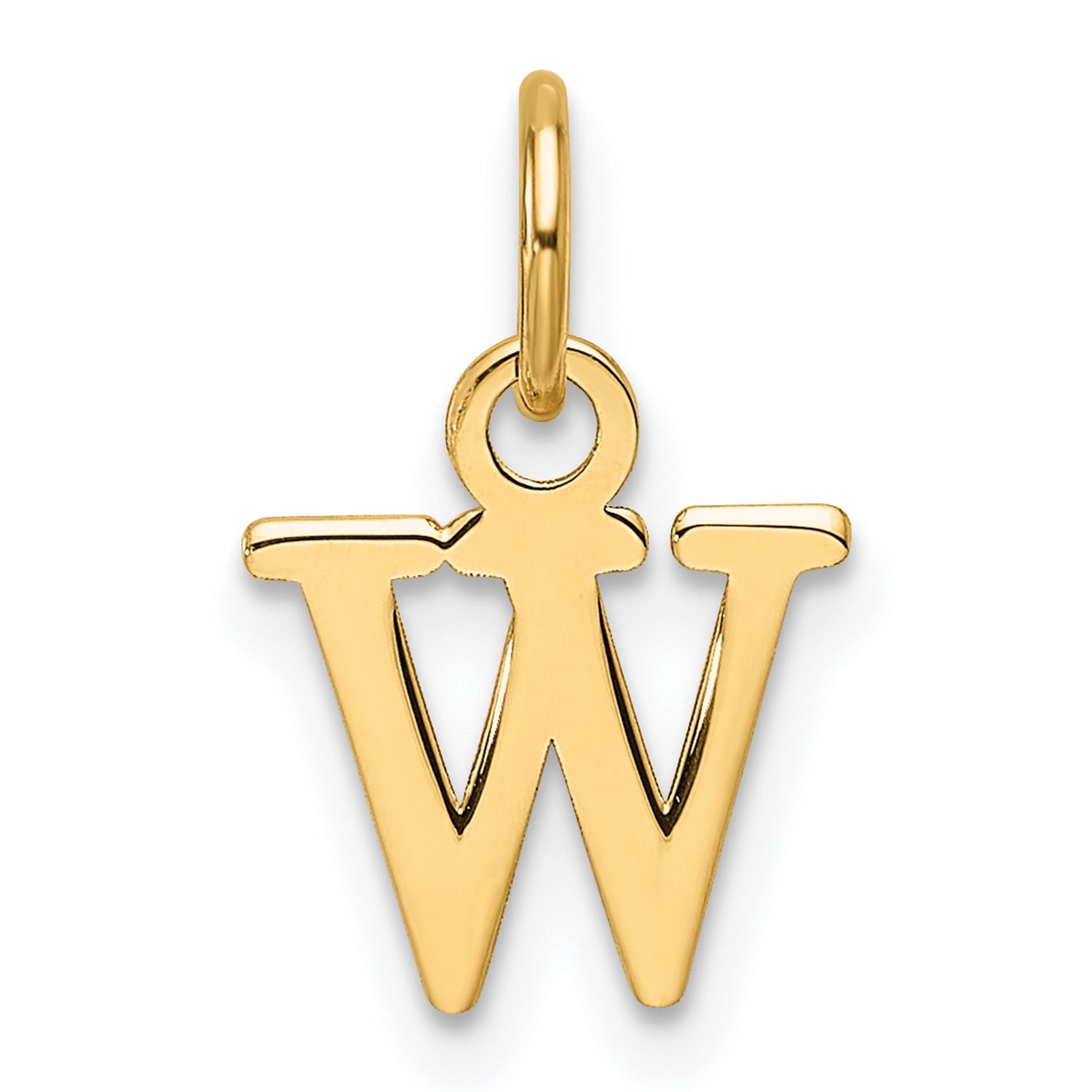 14k Yellow Gold Initial W Pendant, Block Letter Charm in Polished Real Gold for Women or Unisex