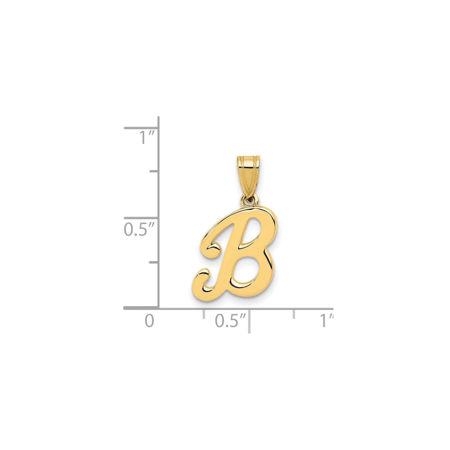 14k Yellow Gold Letter B Pendant, Polished Script Initial Charm for Men or Women