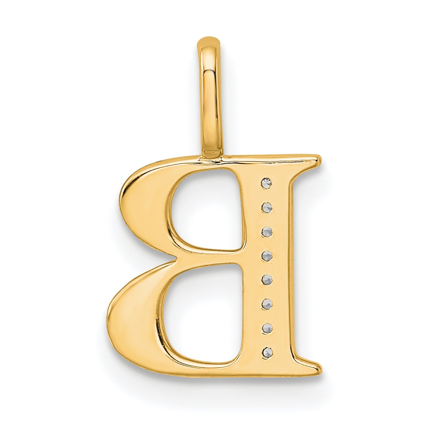 14k Yellow Gold Letter B Pendant with White Diamond Accent Charm for Men or Women