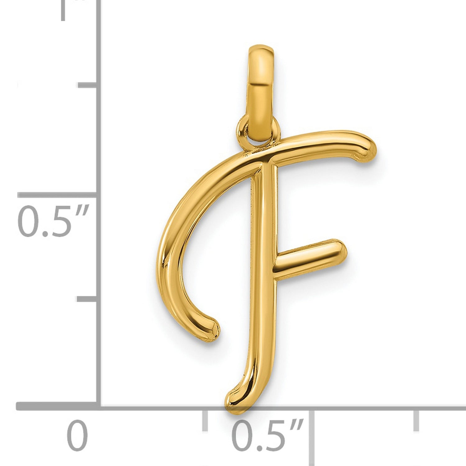 14k Yellow Gold Letter F Pendant, Script Initial Charm, Dainty Monogram Jewelry for Women