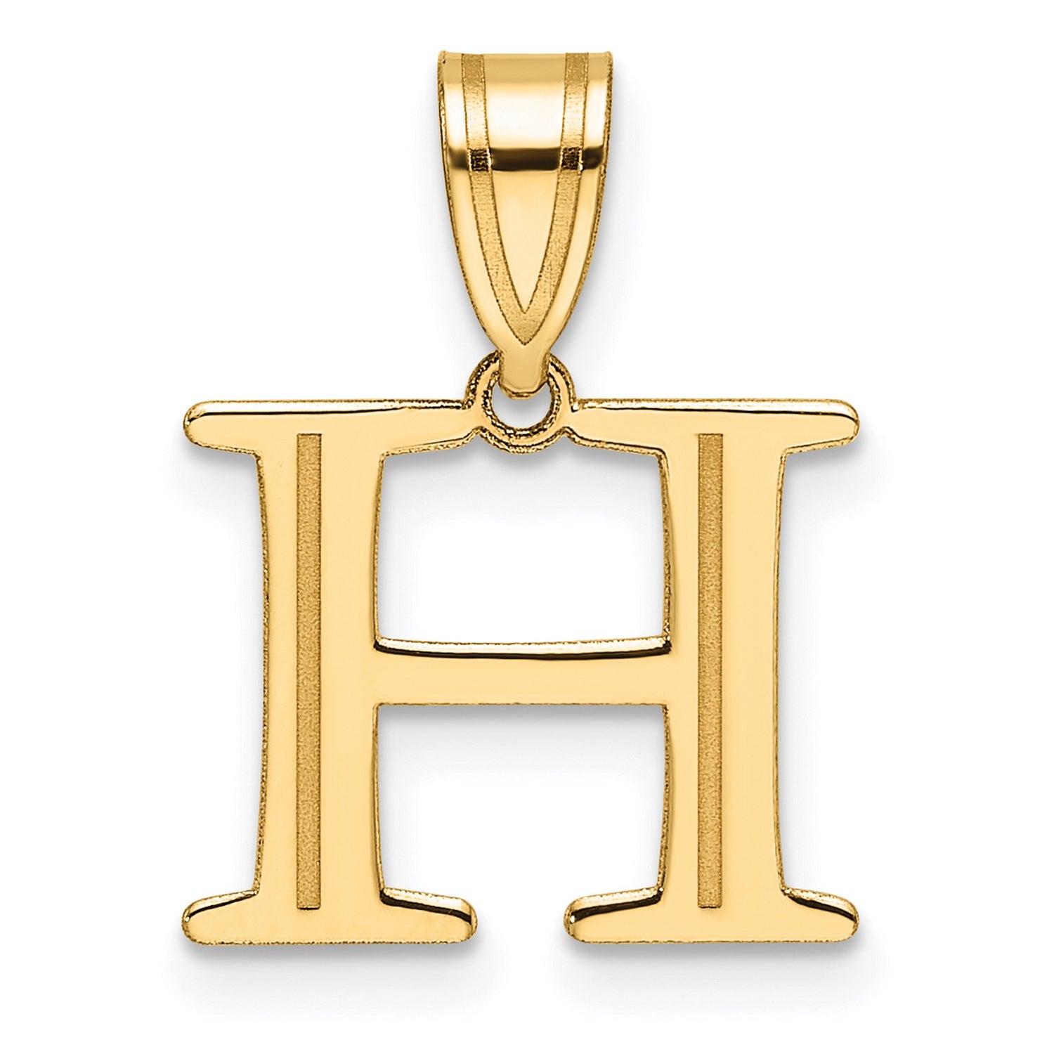 14k Yellow Gold Letter H Pendant Charm, Polished Block Initial Design for Women or Unisex Wear