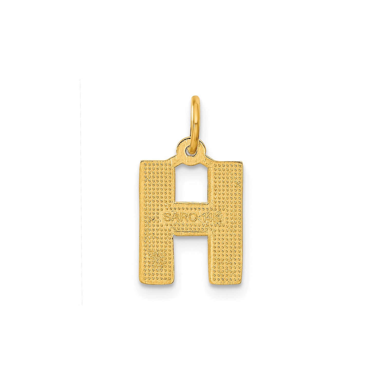 14k Yellow Gold Letter H Pendant, Diamond Cut Accents, Textured and Polished Finish