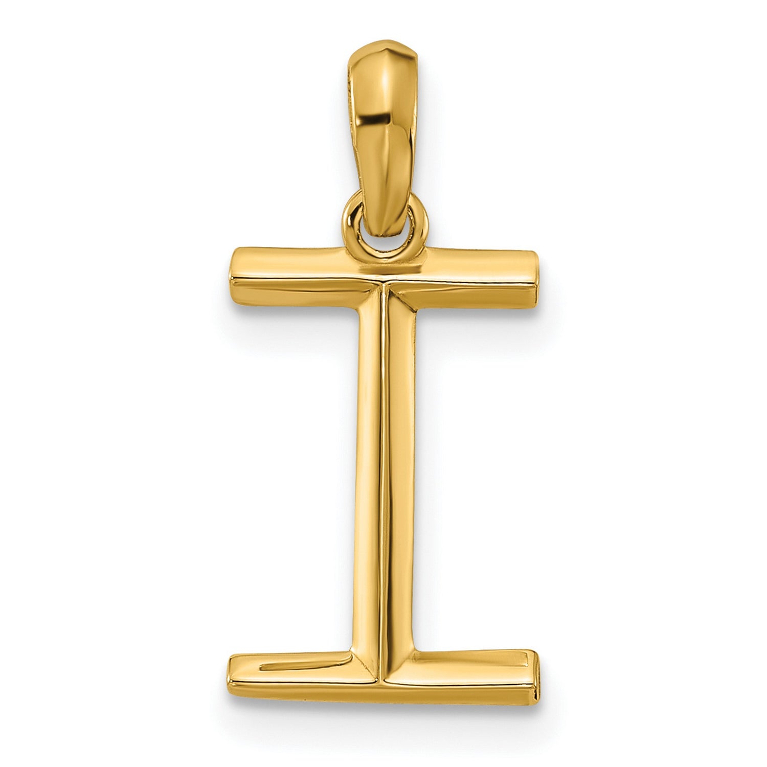 14k Yellow Gold Letter I Pendant, High-Polish Alphabet Charm for Women and Men