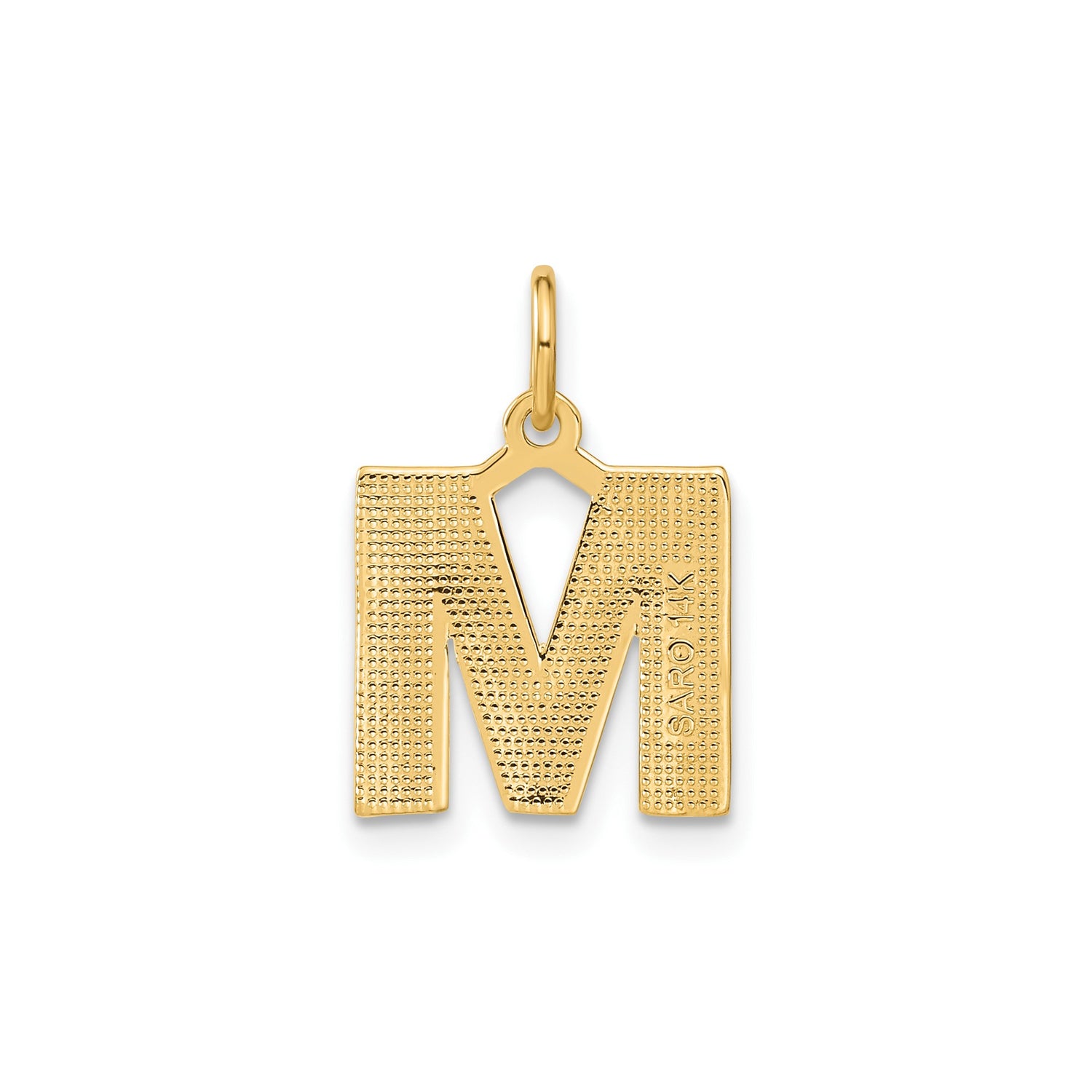 14k Yellow Gold Letter M Pendant with Brushed Finish and Diamond Cut Accents
