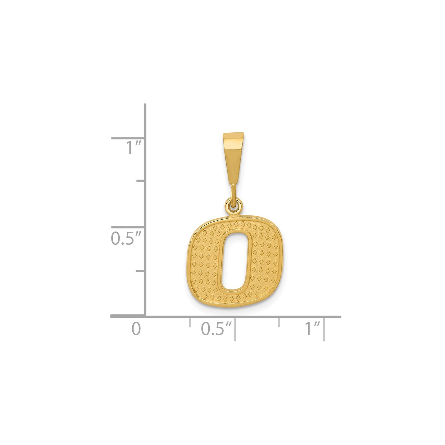 14k Yellow Gold Letter O Pendant Charm, Diamond-Cut Textured Uppercase Block Monogram