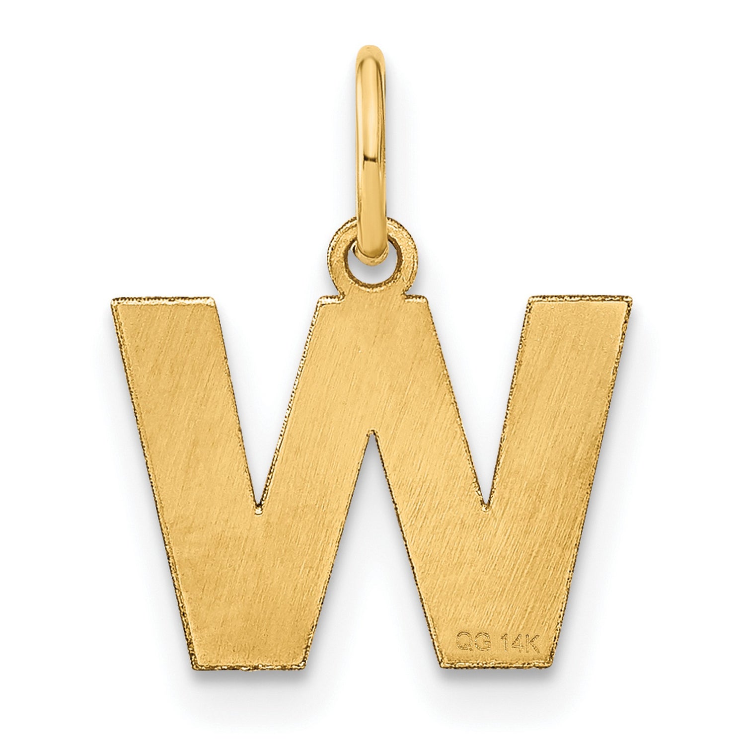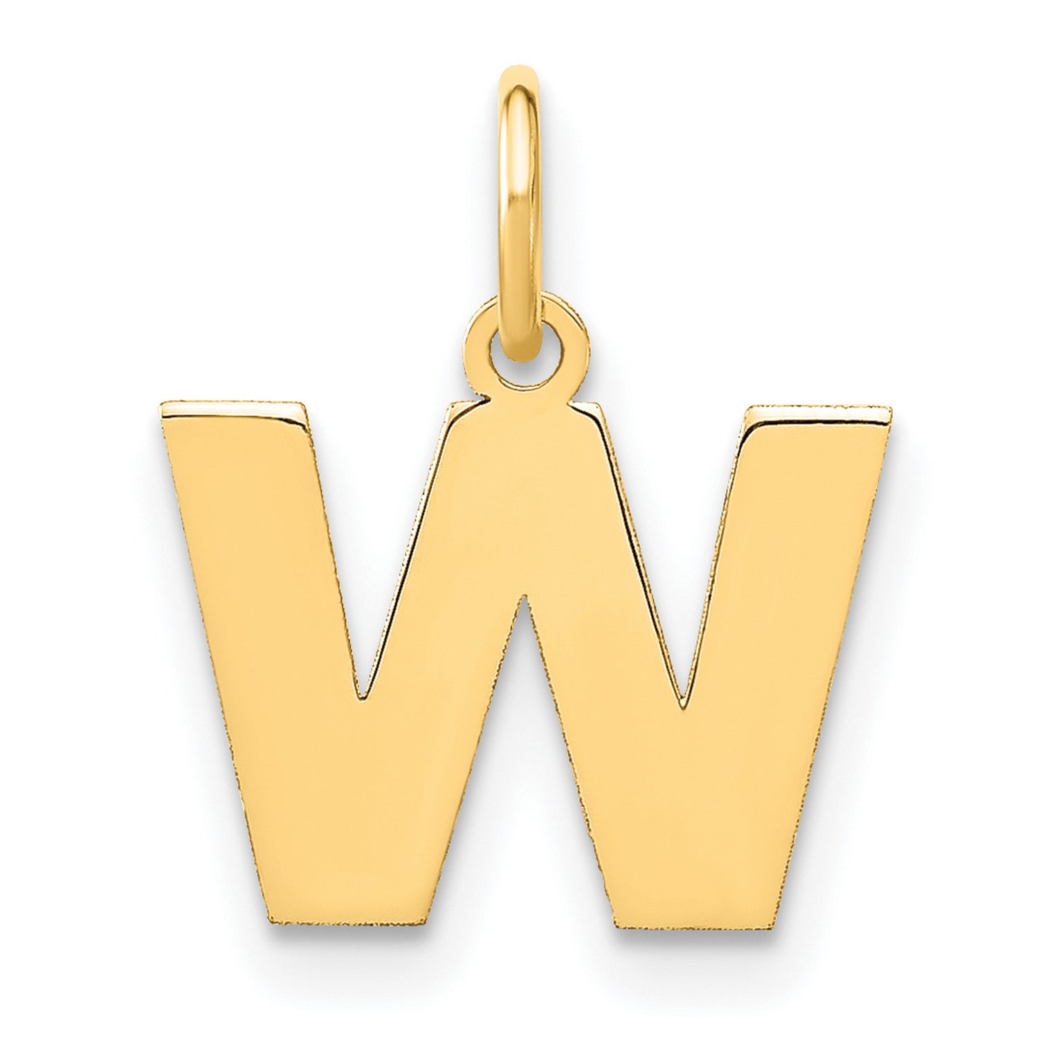 14k Yellow Gold Letter W Pendant Charm, Polished Block Initial Monogram Jewelry