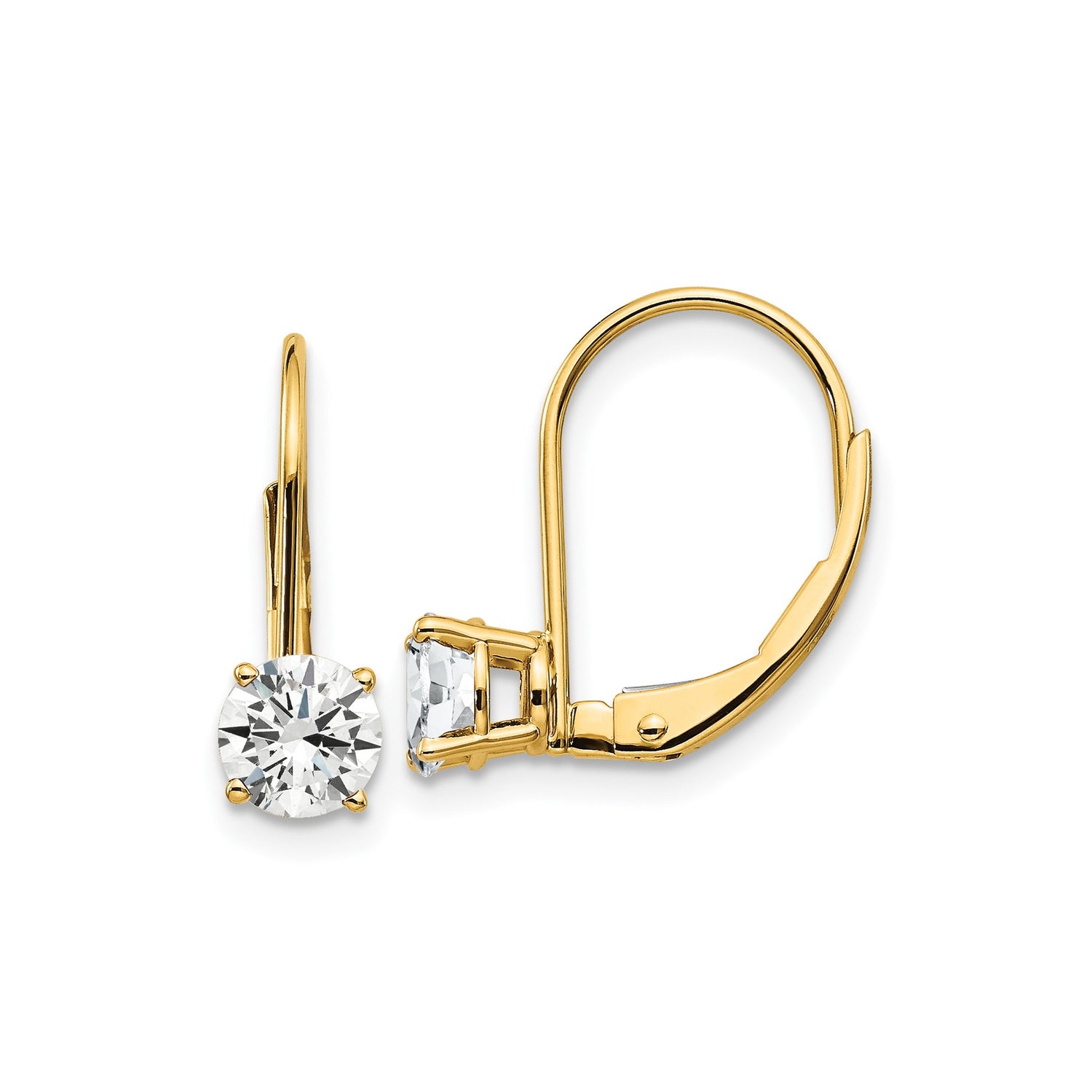 14k Yellow Gold Leverback Earrings with Round Cut Cubic Zirconia, Dainty Drop Design