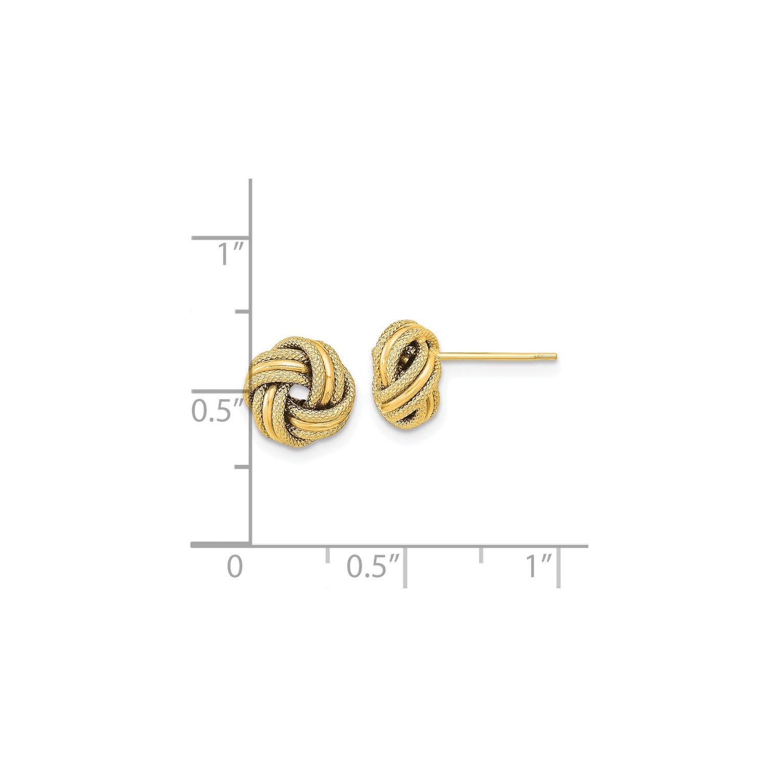 14k Yellow Gold Love Knot Stud Earrings with Polished and Textured Finish for Women