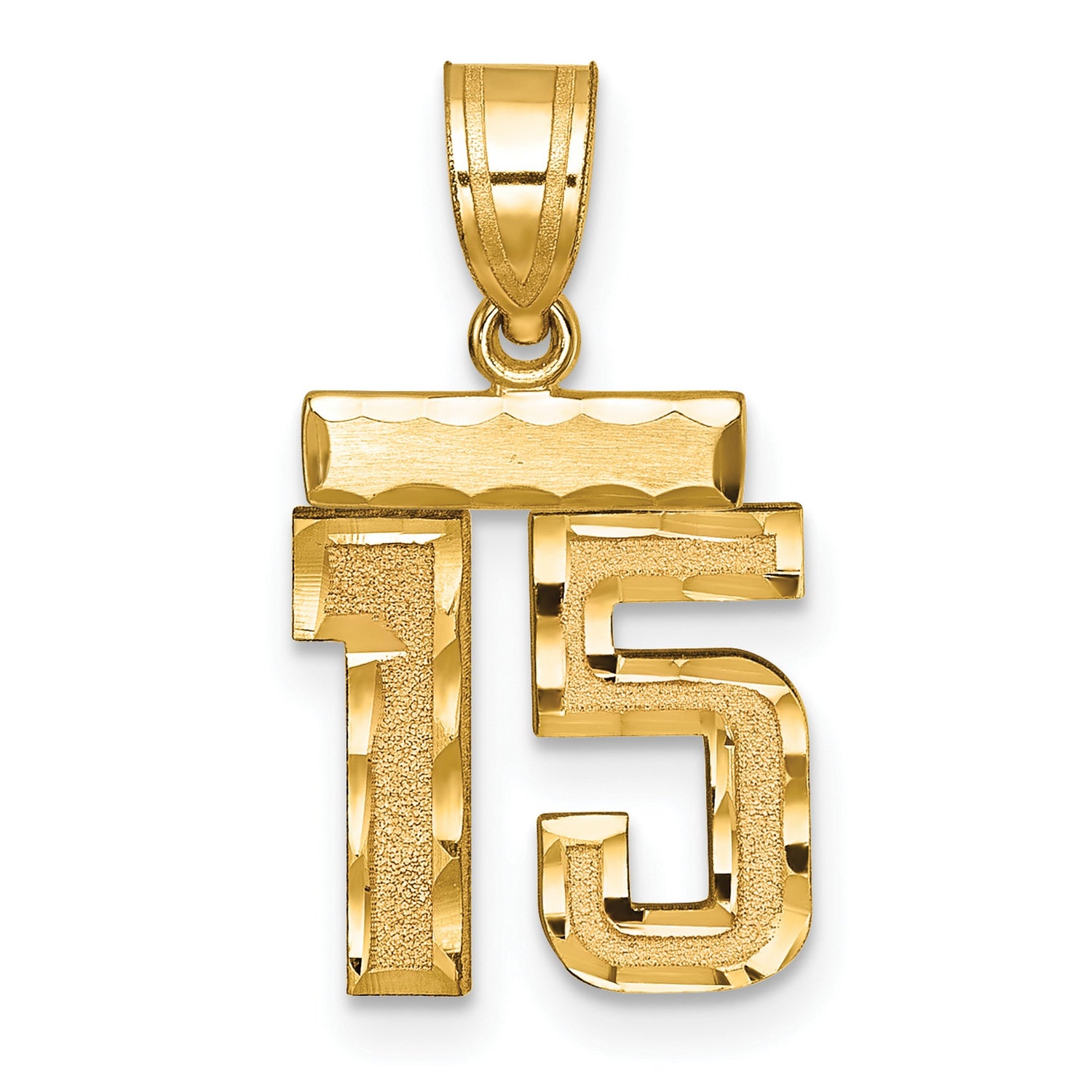 Celebrate a special milestone or significant achievement with our exquisite Small Brushed Diamond-cut Number 15 Charm Pendant, meticulously crafted in stunning real 14k yellow gold. This elegant number charm pendant is perfect for marking a memorable occasion such as a 15th birthday, anniversary, or any event that celebrates the number 15.