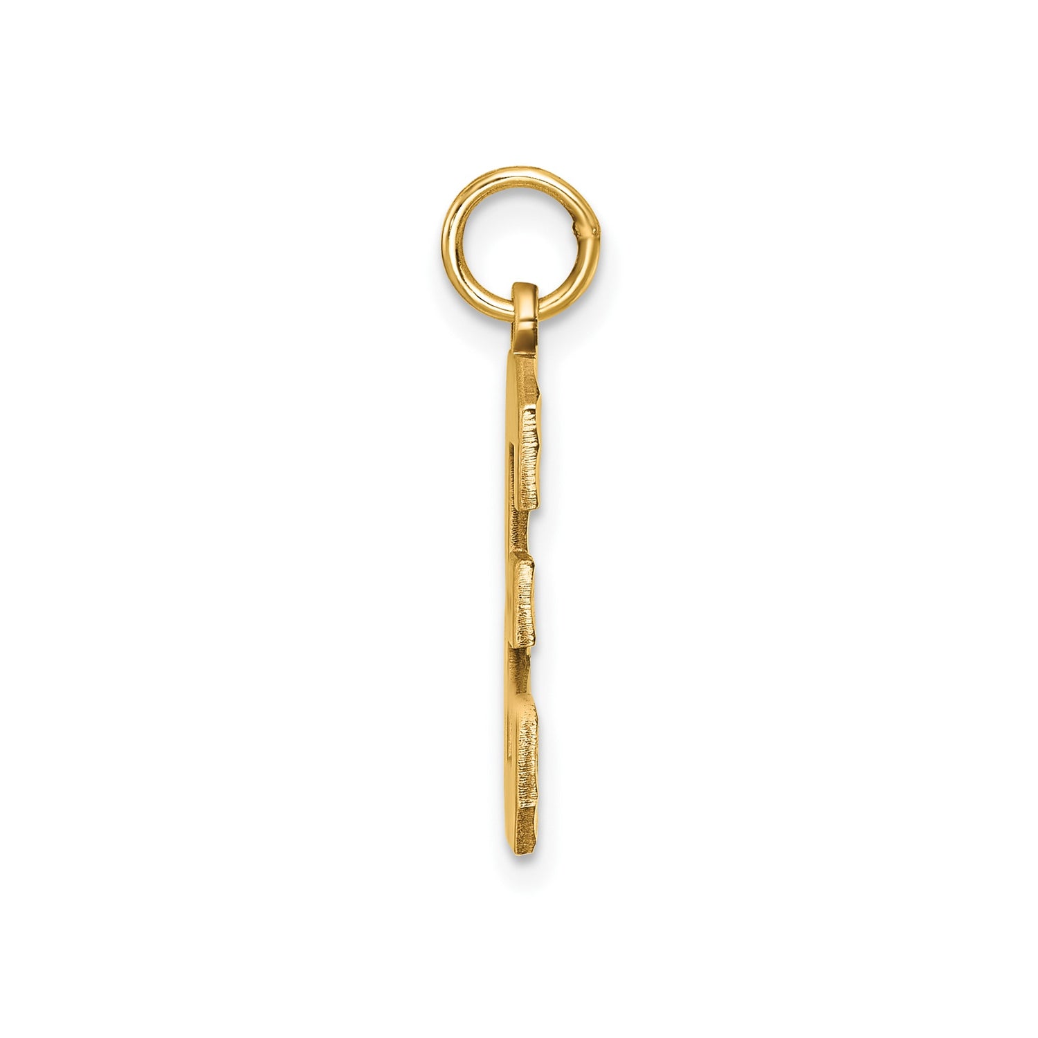 14k Yellow Gold Number 3 Pendant Charm with Polished and Textured Finish, Unisex Design