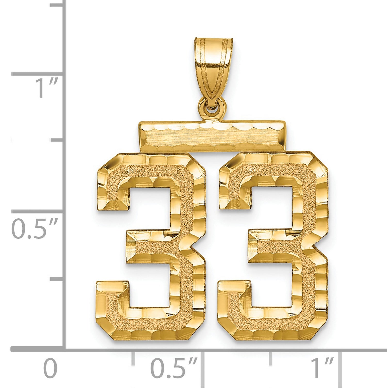 Enhance your jewelry collection with our exquisite Large Brushed Diamond-cut Number 33 Charm Pendant crafted in real 14k Yellow Gold. This stunning piece embodies elegance and style, making it a perfect addition for those who appreciate fine jewelry.