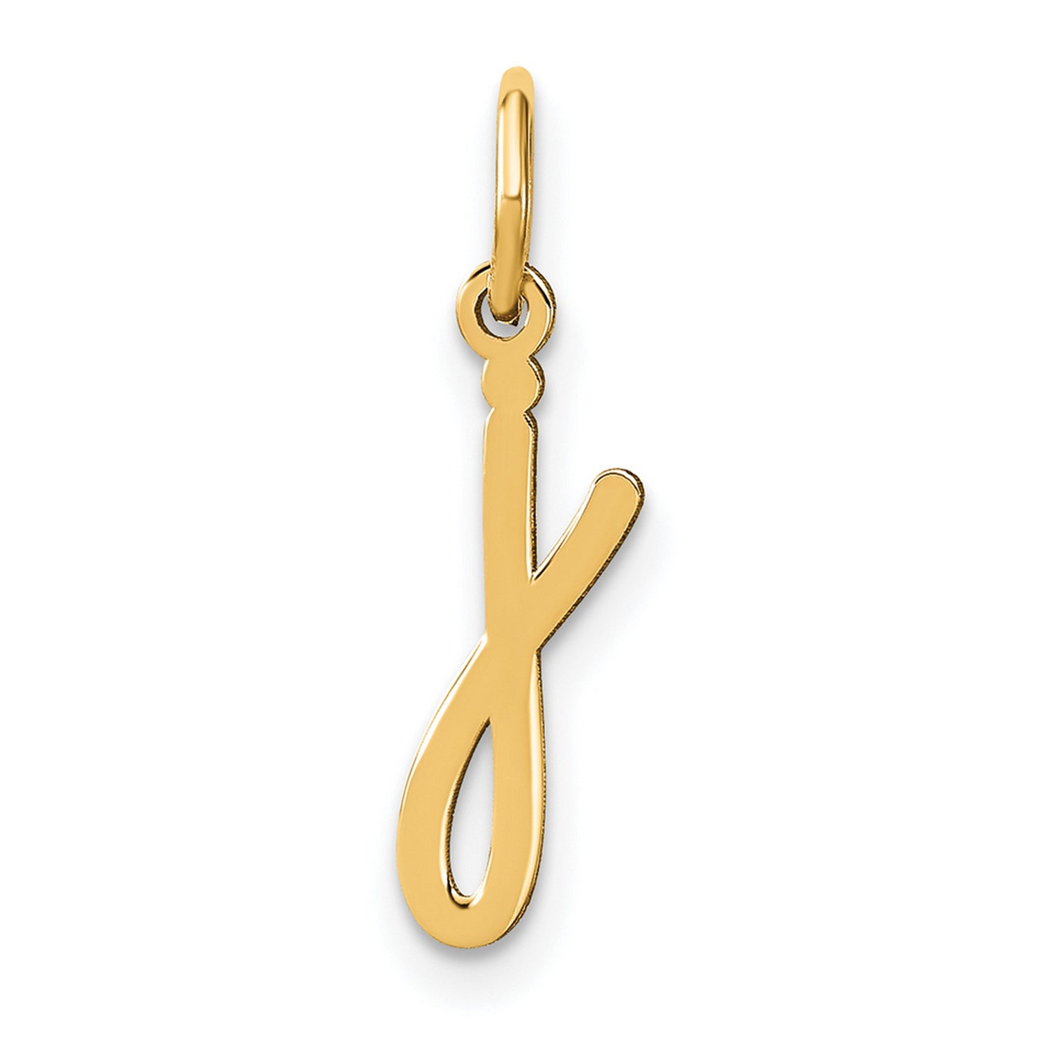 14k Yellow Gold Pendant Charm with Script Letter J Design, Polished Initial Jewelry for Women