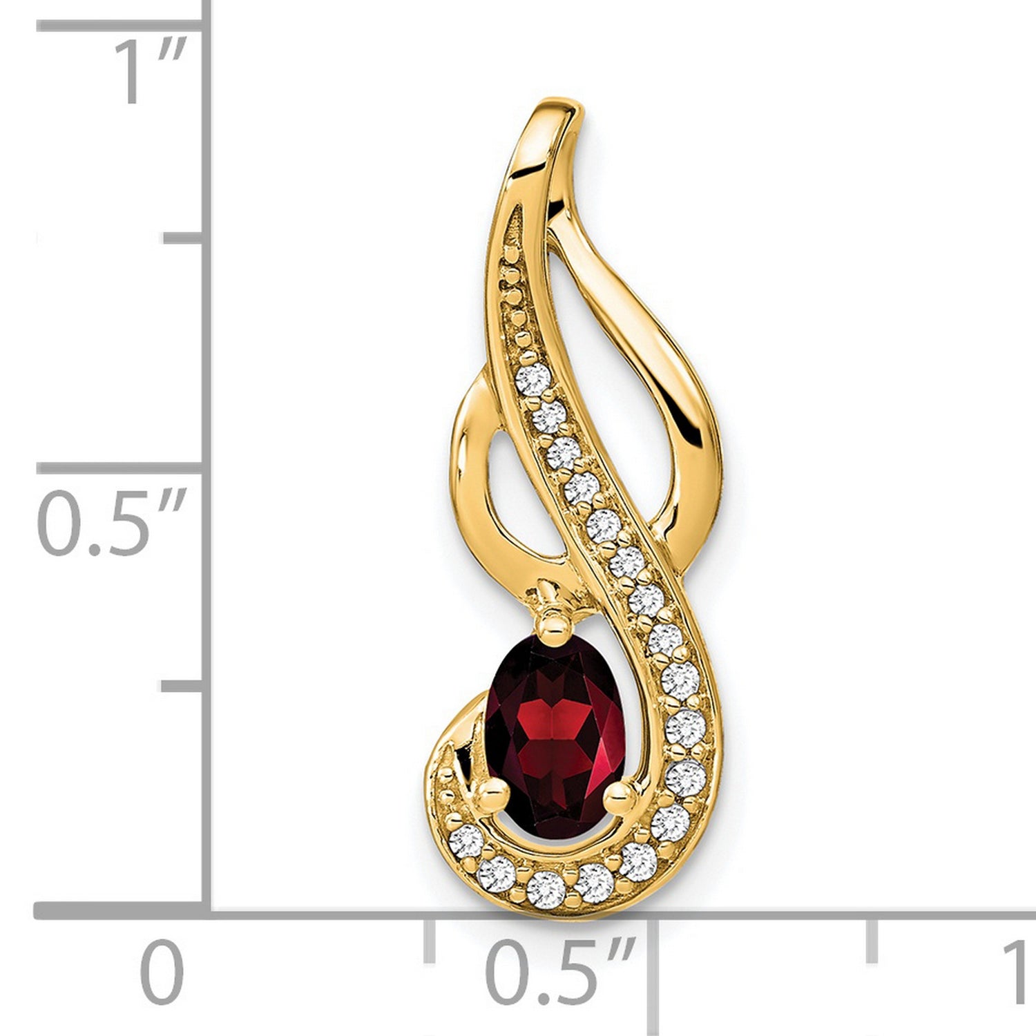 14k Yellow Gold Pendant with Oval Garnet, Abstract Swirl Design and Diamonds Accents
