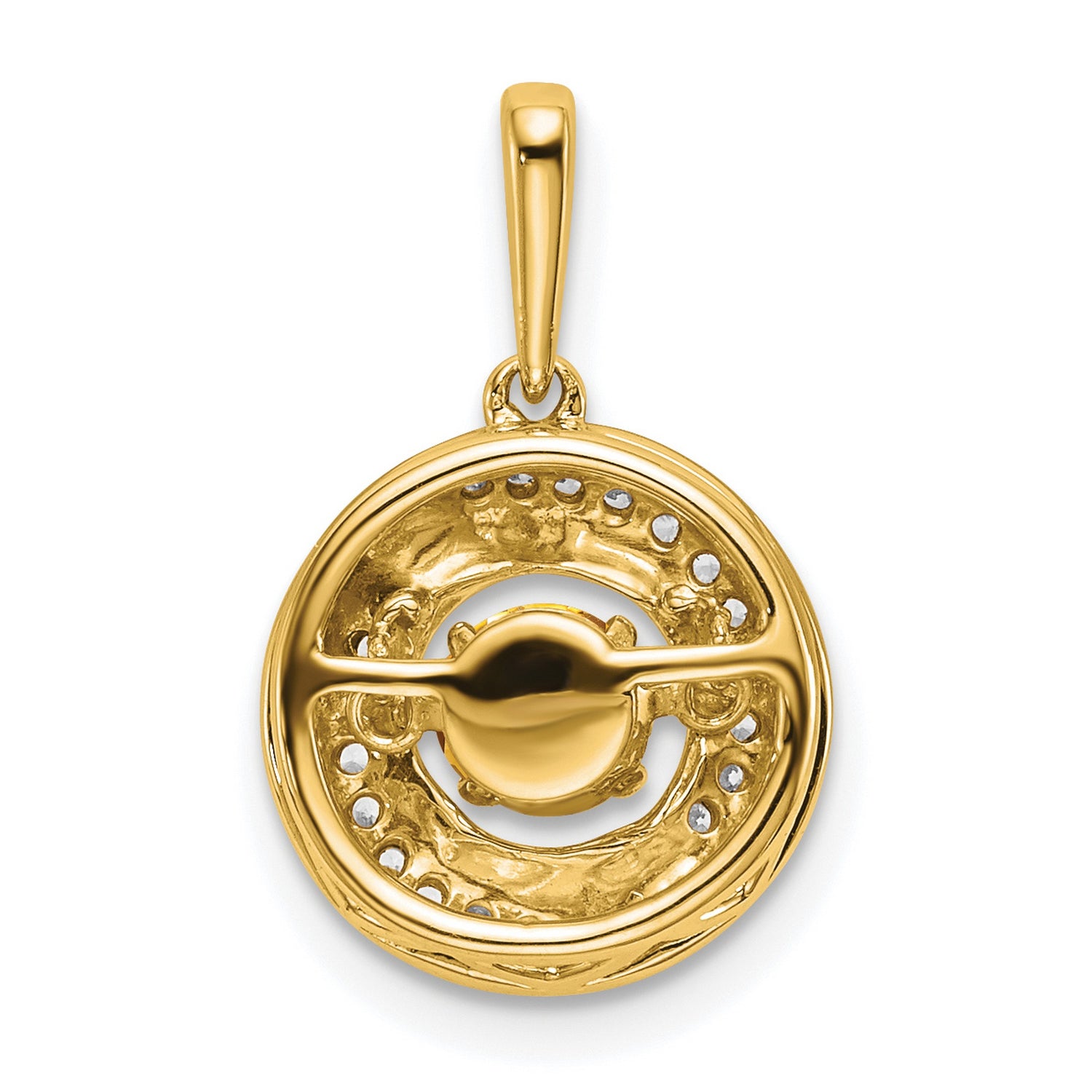 Round Citrine and Diamond Charm Pendant in Real 14k Yellow Gold