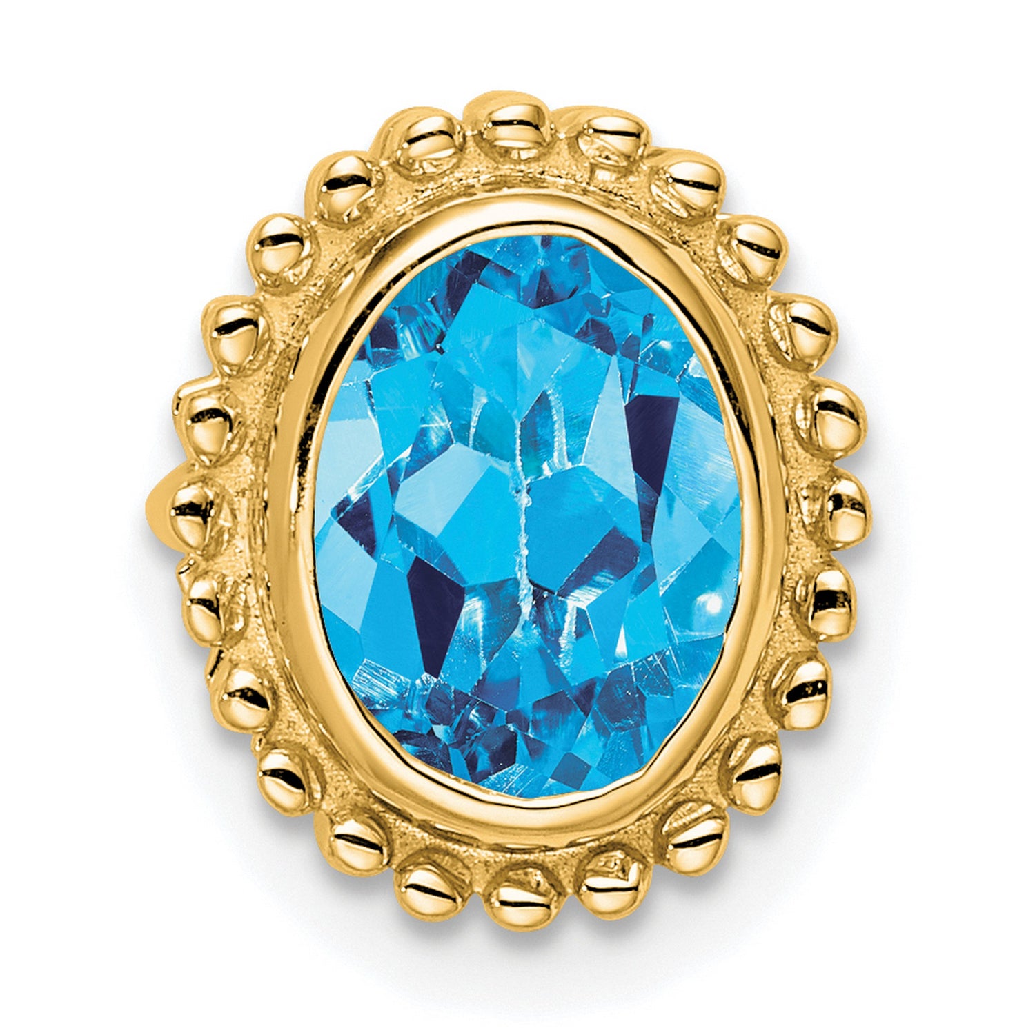 Elevate your jewelry collection with our exquisite Oval Blue Topaz Chain Slide Charm Pendant crafted in genuine 14k Yellow Gold. This stunning piece is designed to capture the essence of elegance and sophistication, making it a perfect addition to any ensemble.