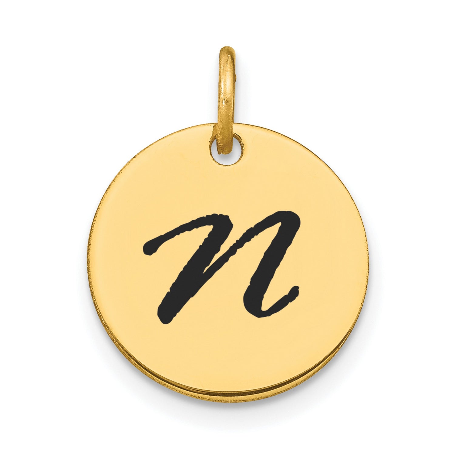 14k Yellow Gold Round Pendant with Bold Script Initial N, Unisex Letter Charm