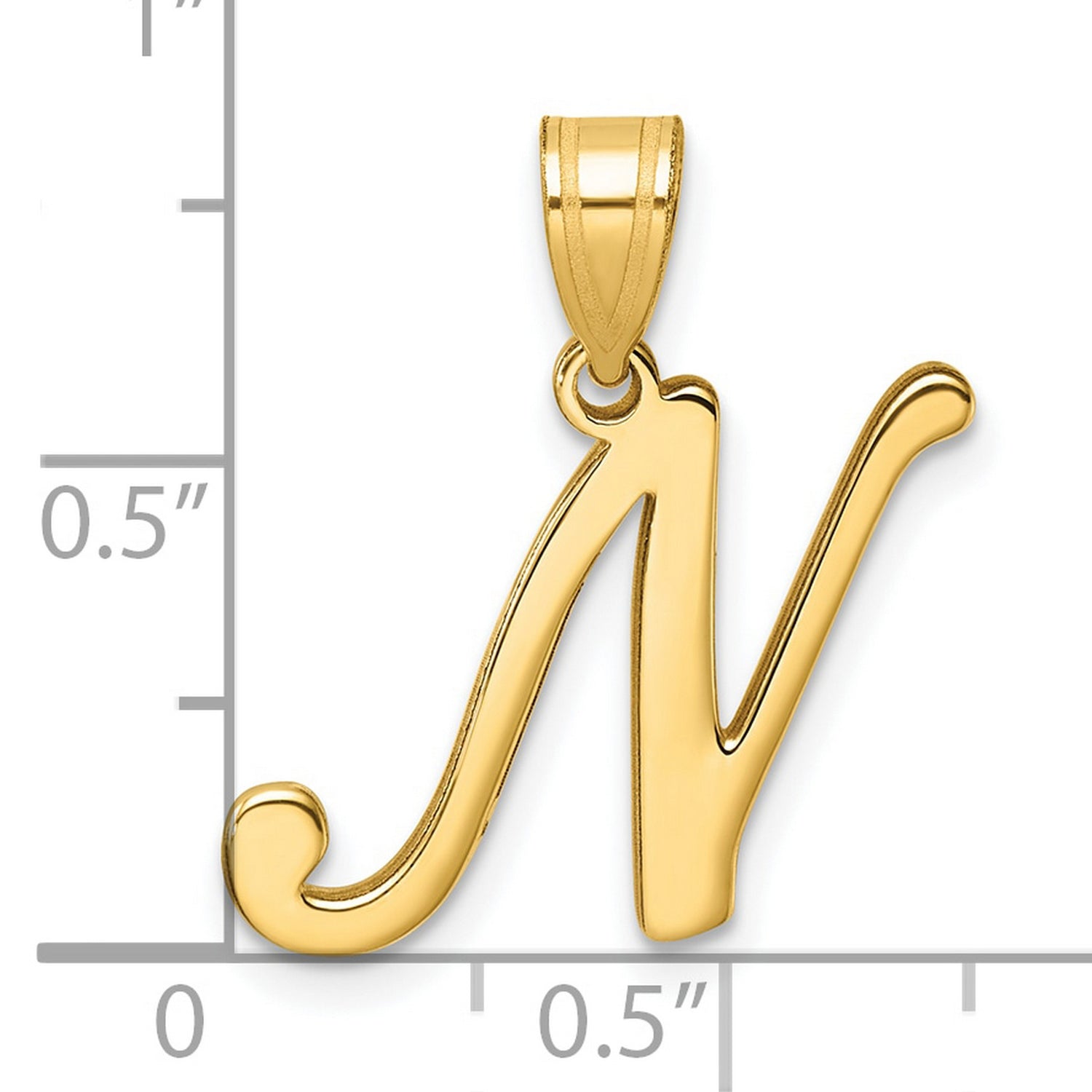 14k Yellow Gold Script Letter N Pendant, Polished Cursive Initial Charm for Women
