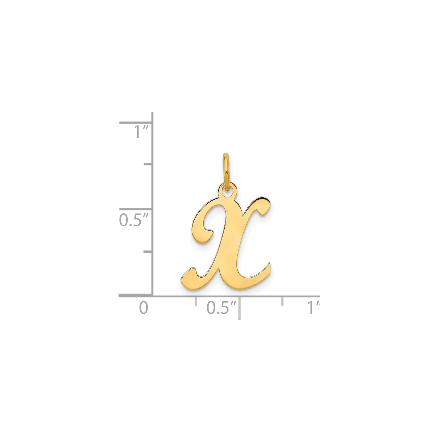 Embrace the elegance of personalization with our Solid Polished Cursive Style Letter X Initial Charm Pendant. Crafted in real 14k yellow gold, this pendant embodies luxury and sophistication, making it a perfect addition to your jewelry collection.