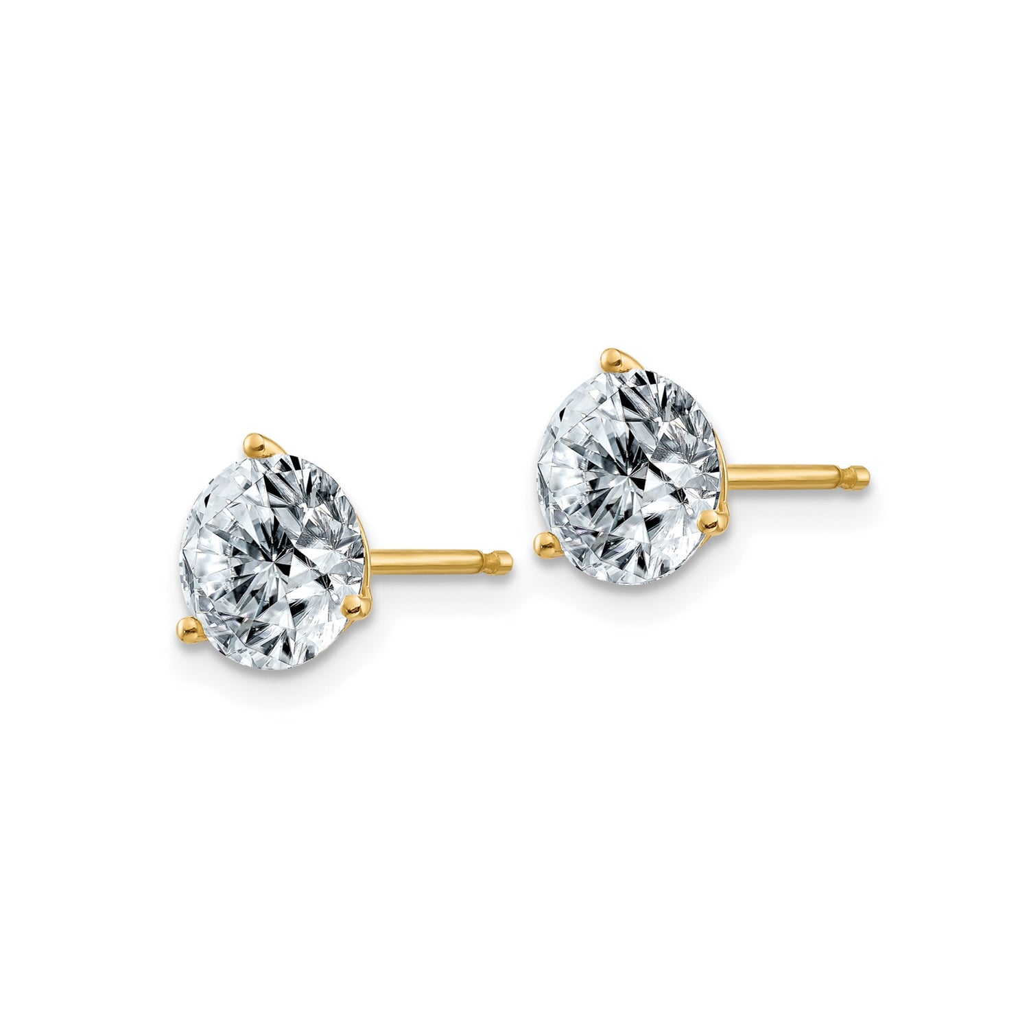 14k Yellow Gold Solitaire Stud Earrings with Round Moissanite in Three Prong Setting