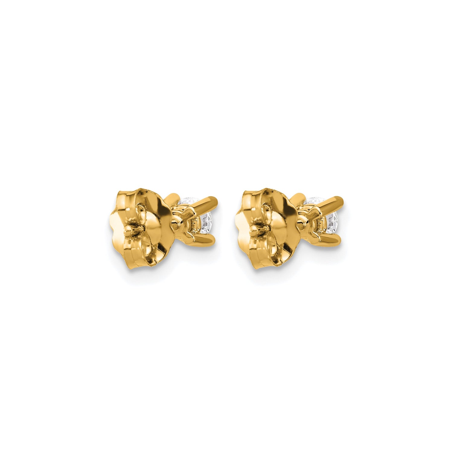 14k Yellow Gold Solitaire Stud Earrings with Round White Gemstones, Classic Four Prong Setting