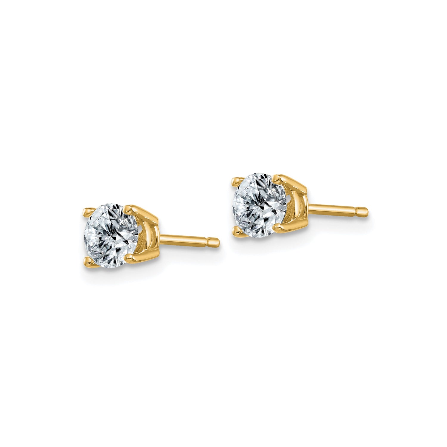 14k Yellow Gold Stud Earrings, Round Cut Moissanite, Classic Four Prong Setting, Minimalist Style